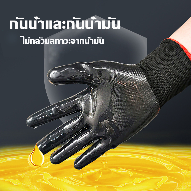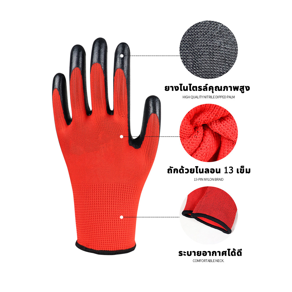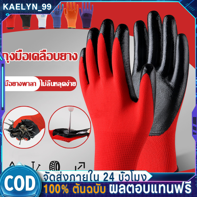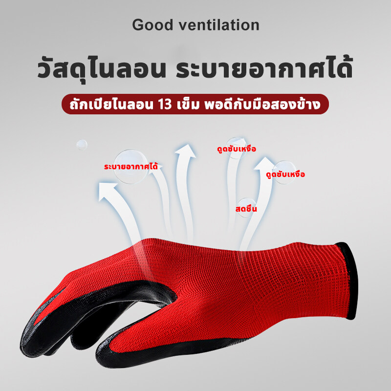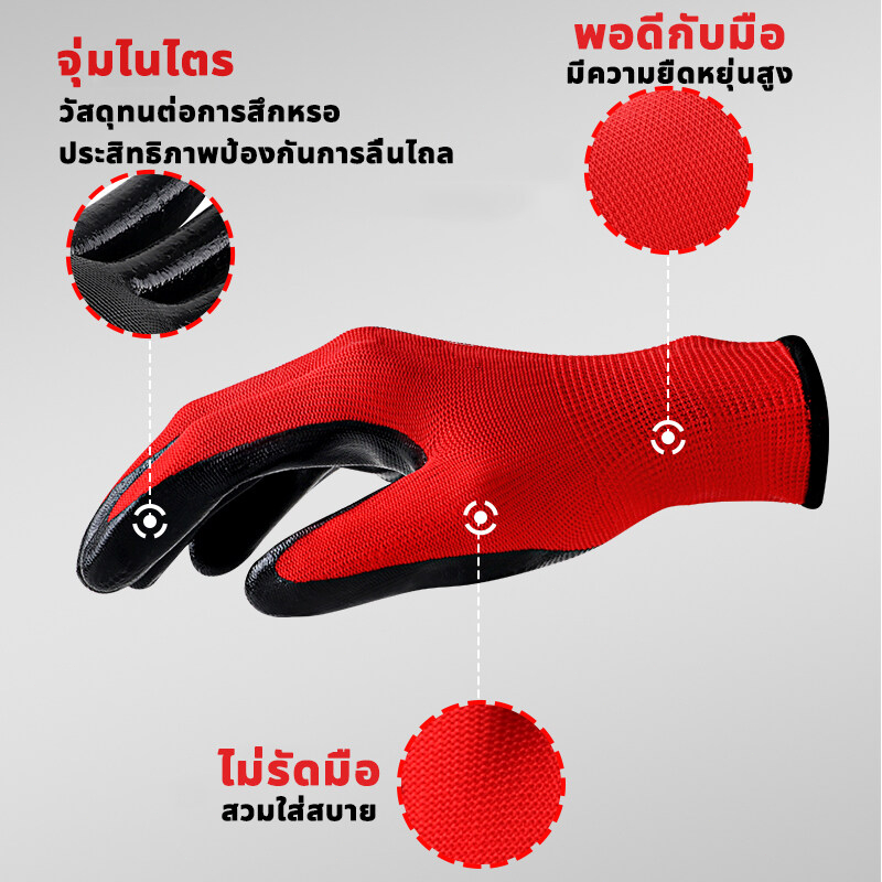 ??ถุงมือผ้าเคลือบยาง หนา อย่างดี (ยกโหล=12 คู่)