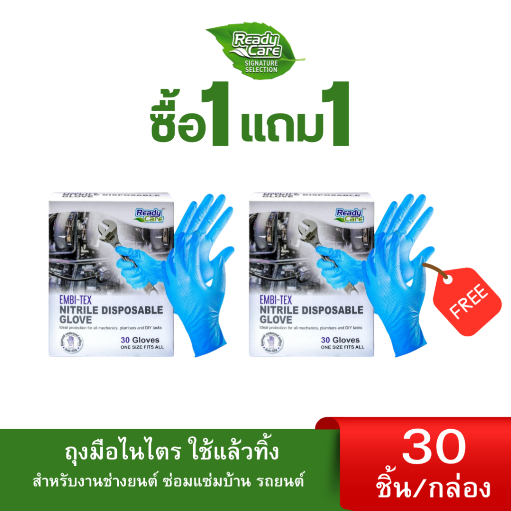(ซื้อ1แถม1) ถุงมือไนไตร หนาพิเศษ 30 ชิ้น สีน้ำเงิน ถุงมือยางใช้แล้วทิ้ง สำหรับงานช่างยนต์ ซ่อมรถ