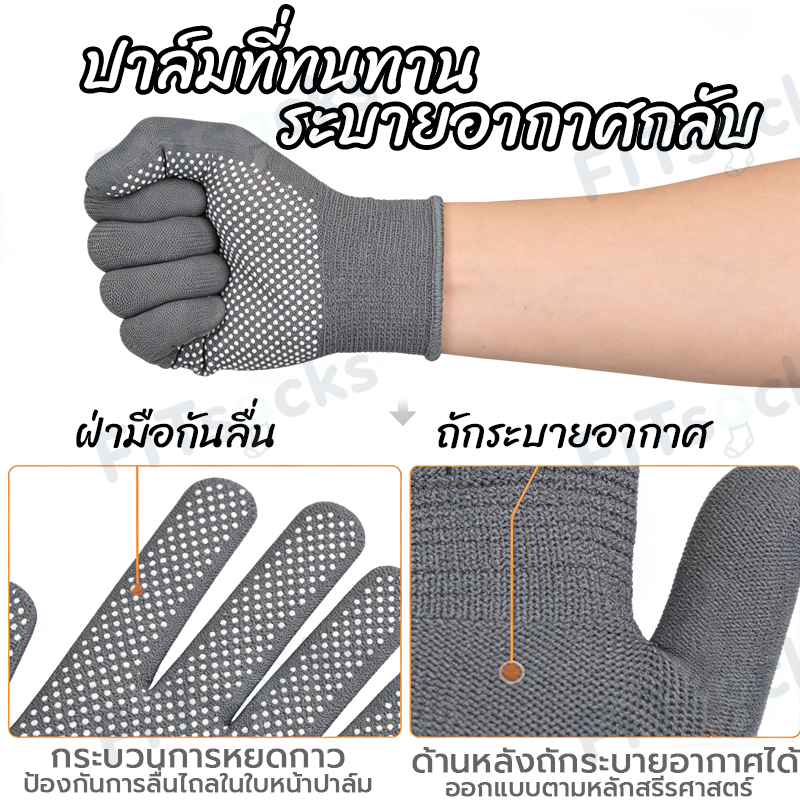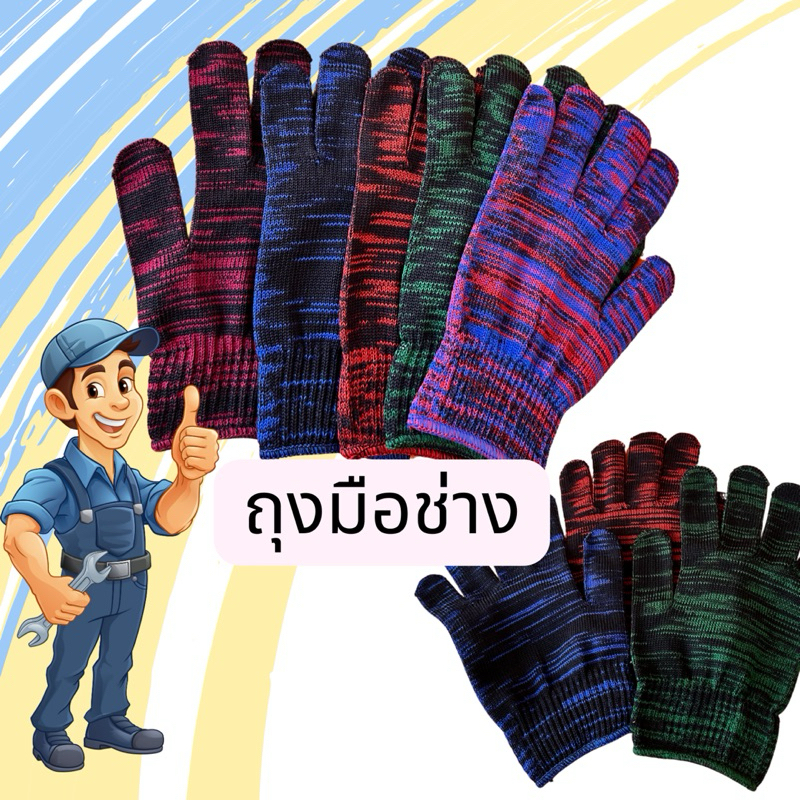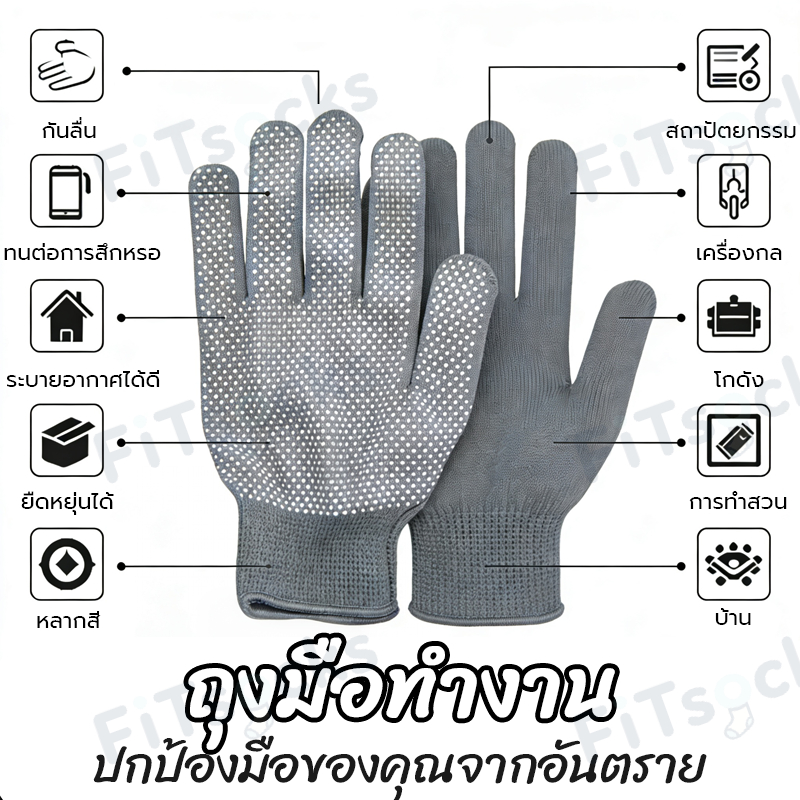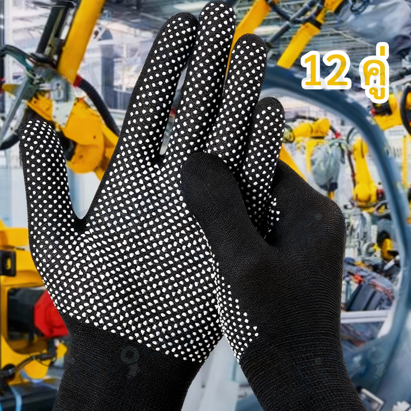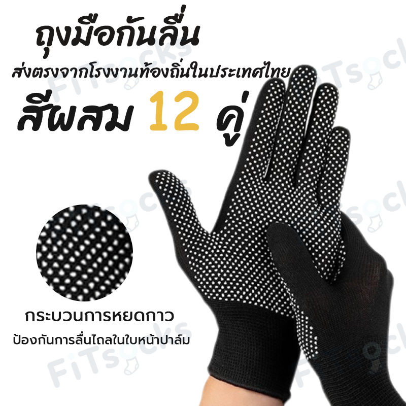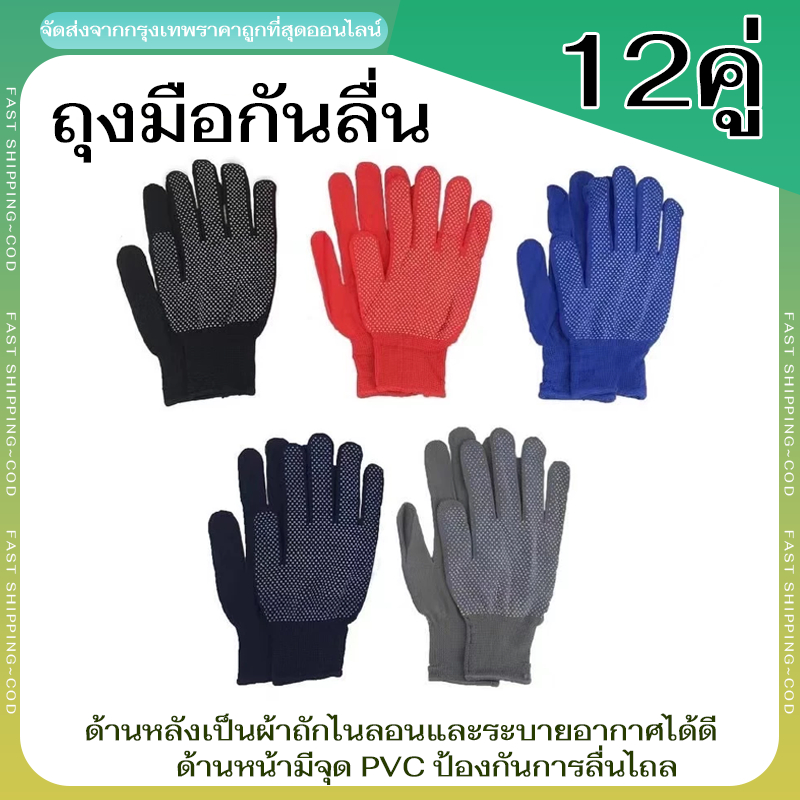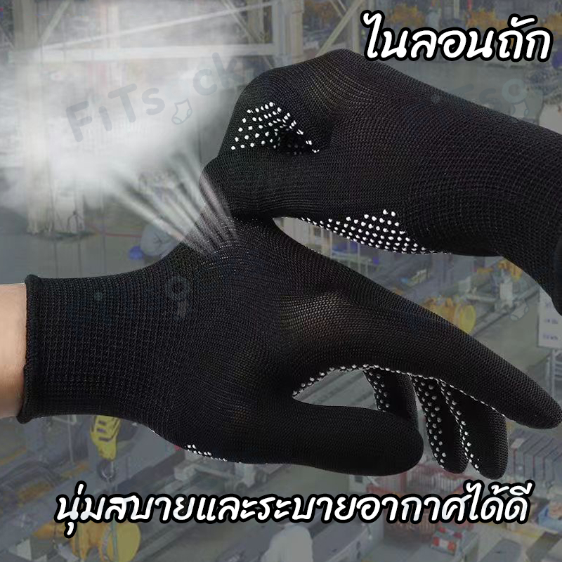 ?ถุงมือทำงาน ตุ๊กแก/ไนลอน ปุ่มกันลื่น ยกโหล12คู่ คละสี ราคาคุ้มค่า ส่งจากกทมพร้อมส่ง