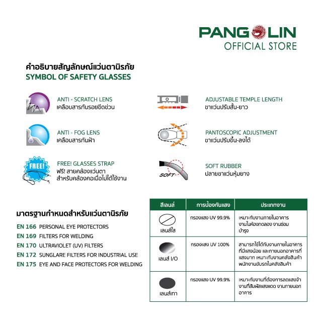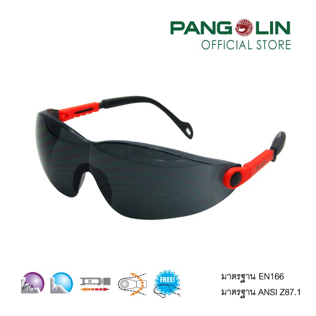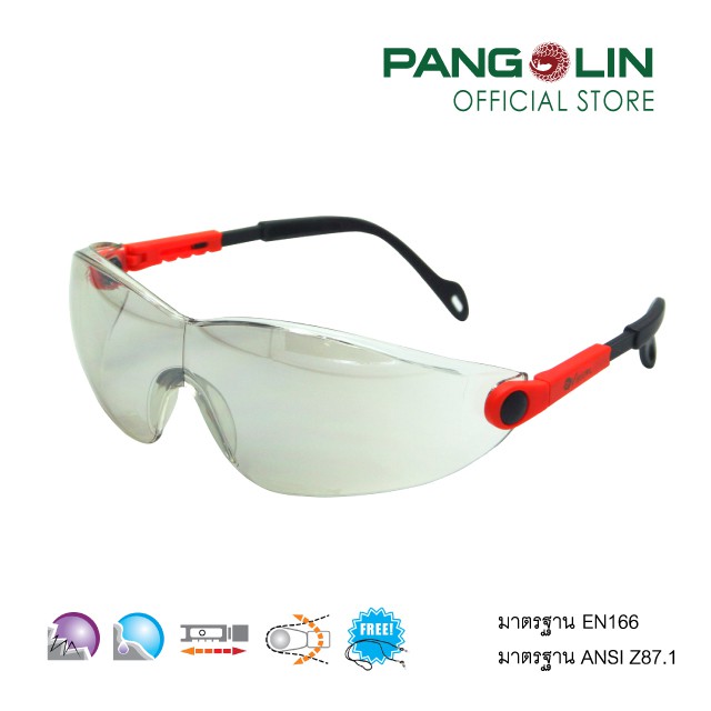 แว่นตานิรภัย แว่นตาเซฟตี้ ป้องกันดวงตาจากอันตราย Pangolin รุ่นGLSS0098-0100(ET-83R) เลนส์ใส เทา ปรอท