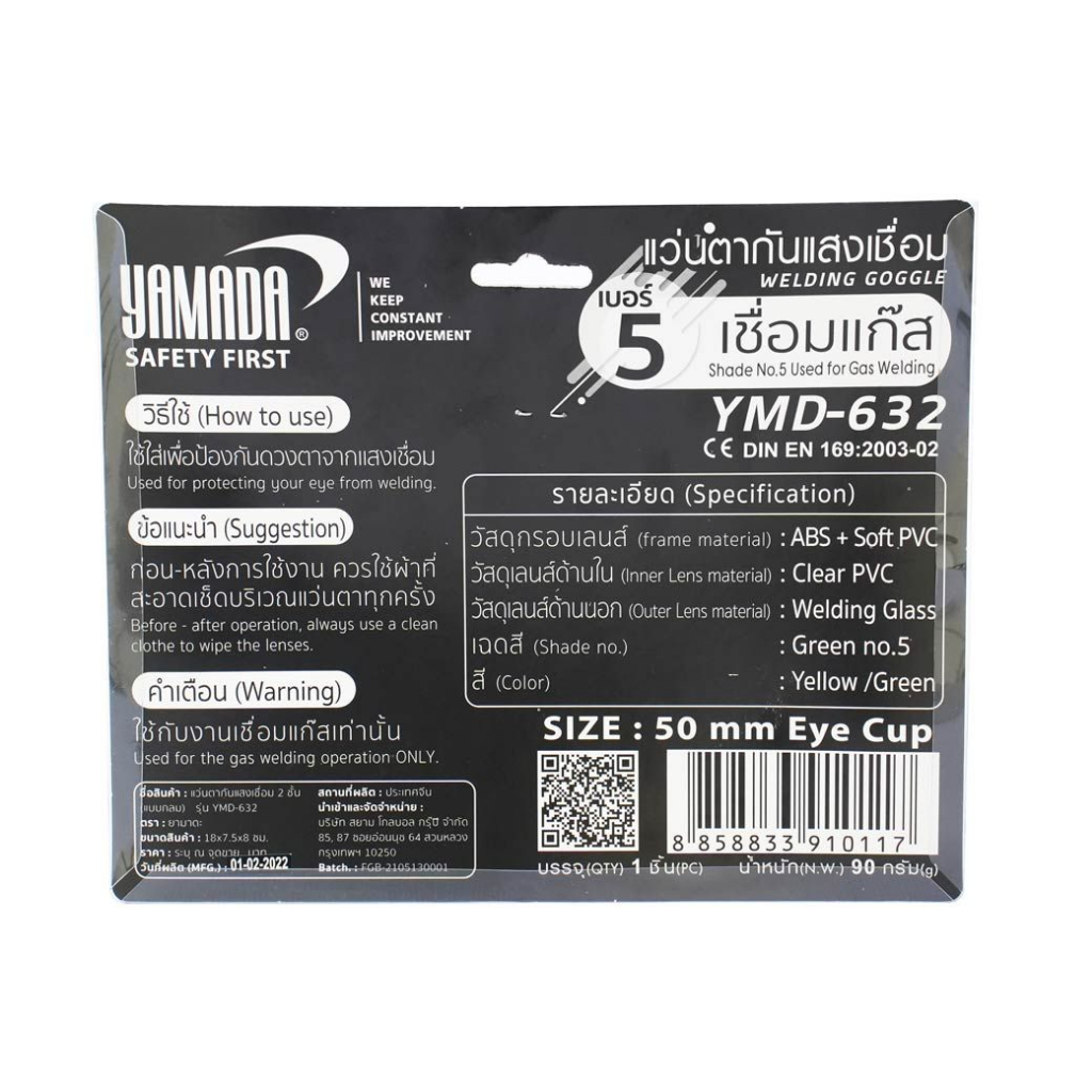 แว่นตากันแสงเชื่อม 2 ชั้น YAMADA แบบกลม YMD-632 แว่นตากันแสงเชื่อมแบบกลม เลนส์ 2 ชั้น