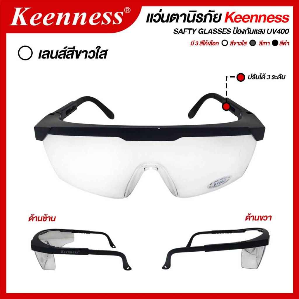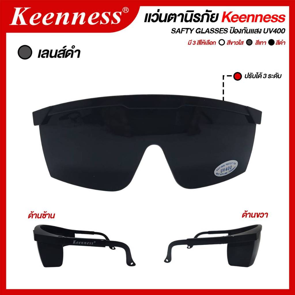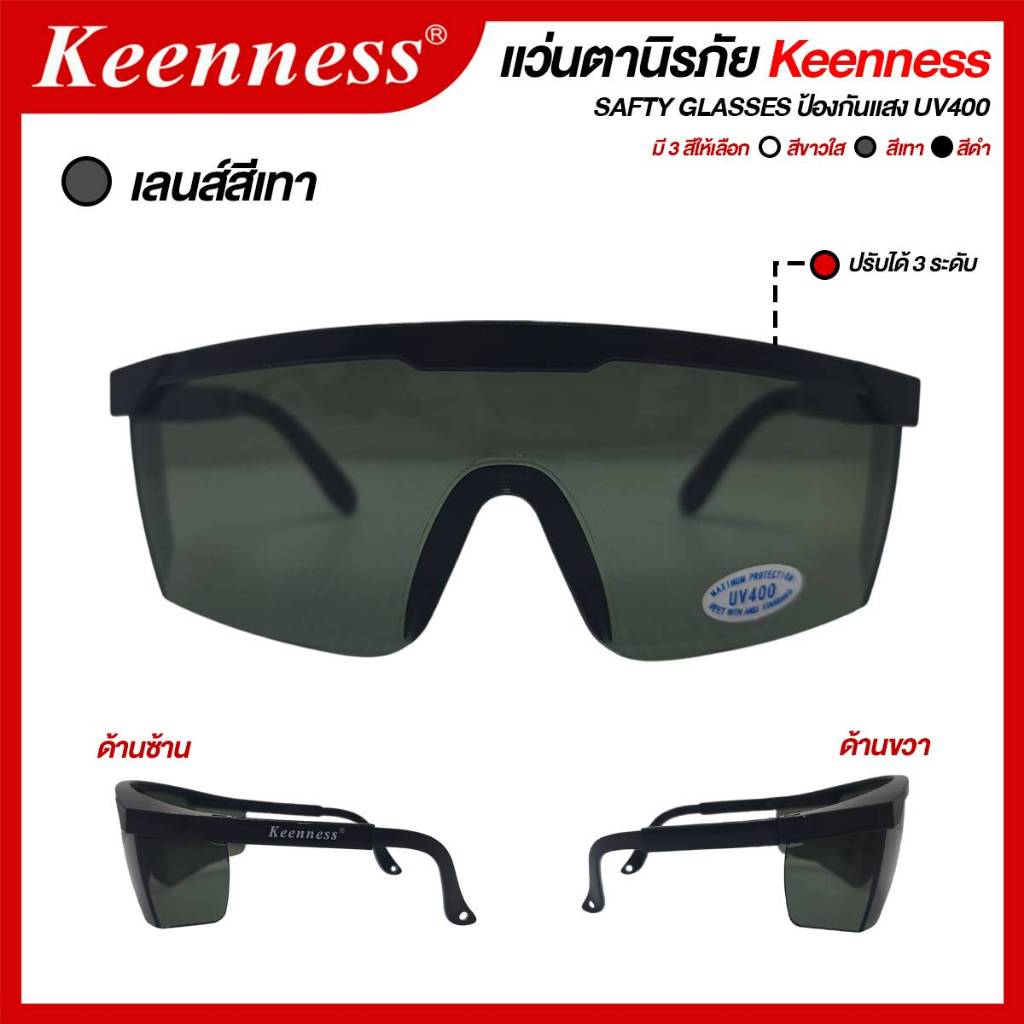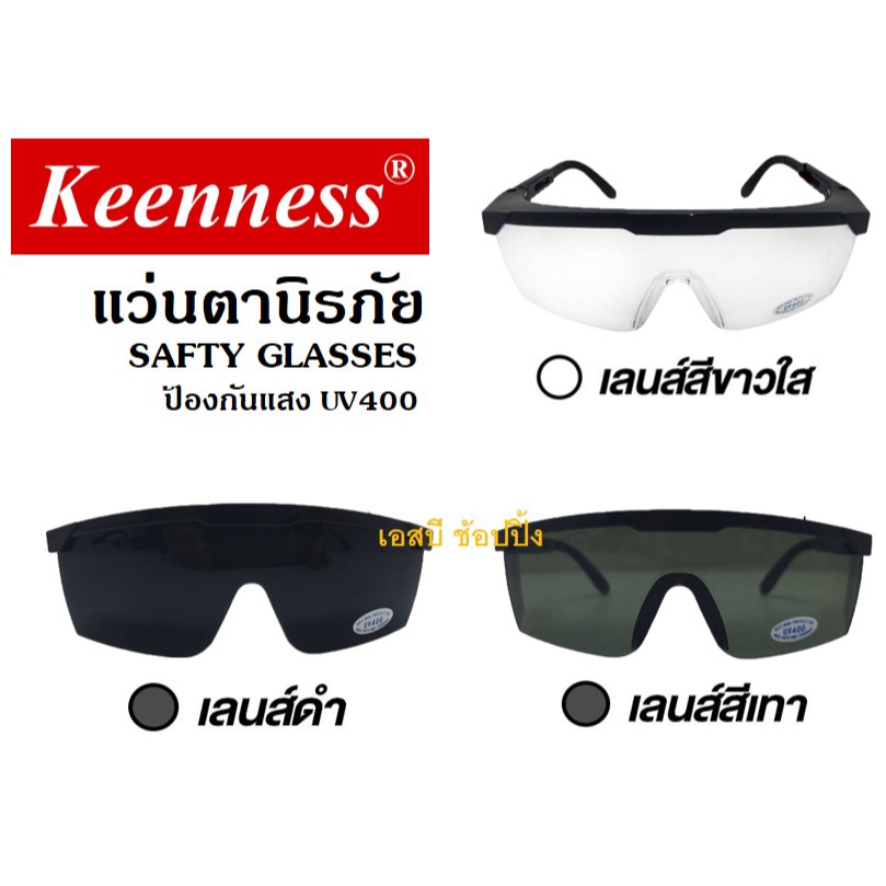แว่นตากันสะเก็ด แว่นตานิรภัย แว่นตาเชื่อม Keenness (สีใส / สีดำ / สีเทา) ***(กล่อง 12 อัน)*** SB+