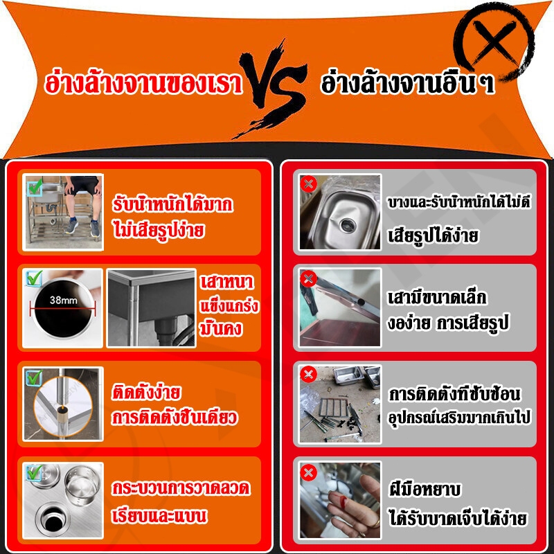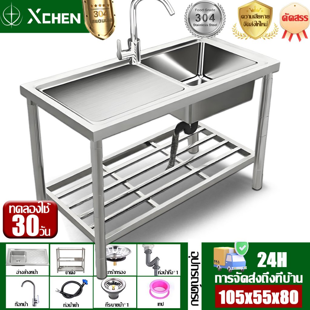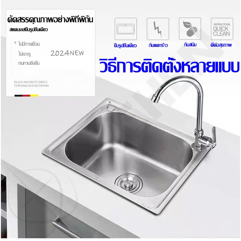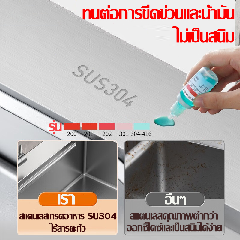 ?2025รุ่นใหม่หนาขึ้นSUS304?ซิงค์ล้างจาน สแตนเลส304 ไม่เป็นสนิม 100% ไม่ขึ้นสนิม ไม่ไม่เสียรูปทรง ห้องครัว ซิ้งล้างจานถูก