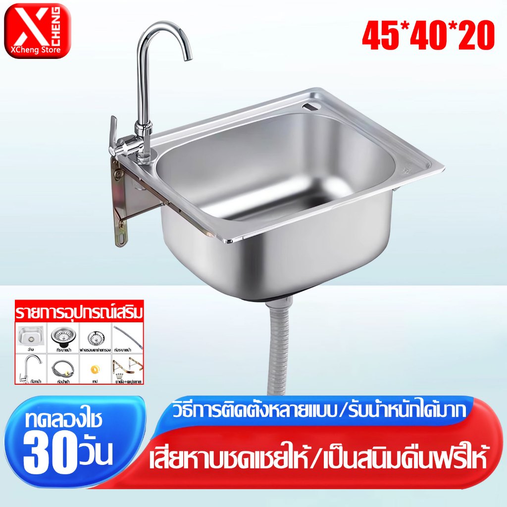 ?304 สแตนเลสนาโน?อ่างล้างจาน ซิงค์ล้างจาน 1 หลุม 45*40cm ลึก20cm ห้องครัว ห้องน้ำ อ่างล้างมือ อ่างล้างผัก ไม่ใช้พื้นที่ สแตนเลส 304