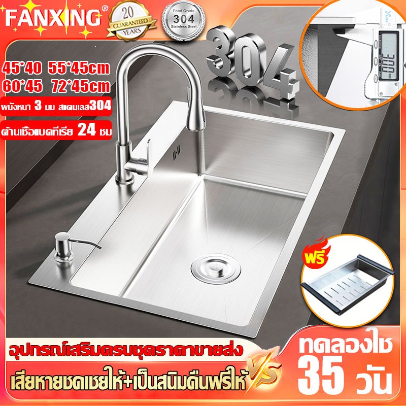 ?304 สแตนเลสนาโน?FANXING อ่างล้างจาน ซิงค์ล้างจาน 1 หลุม ซิงค์ล้างจาน ขนาด72x45cm ลึก25cm ไม่เป็นสนิม 100% ป้องกันคราบน้ำมัน อ่างล้างจานสแตนเลส