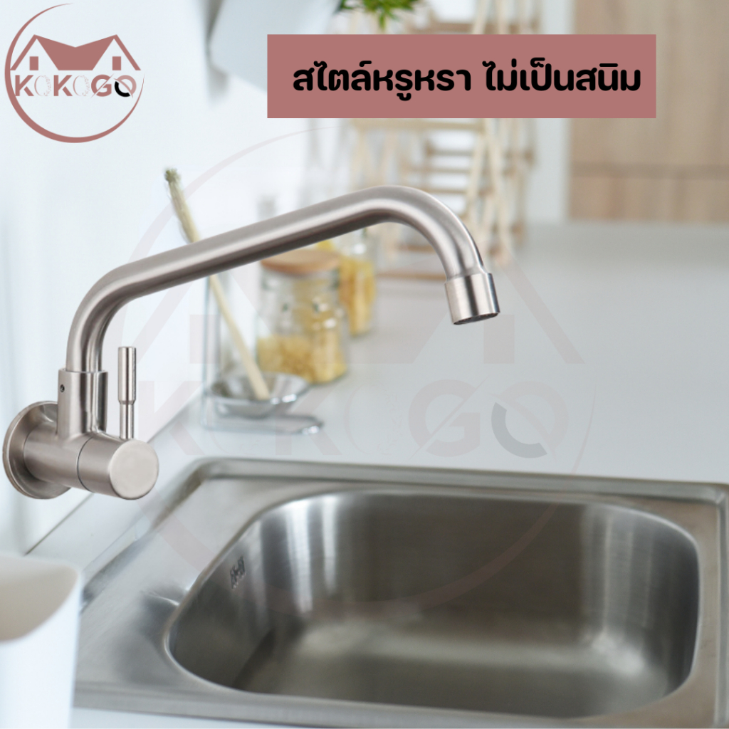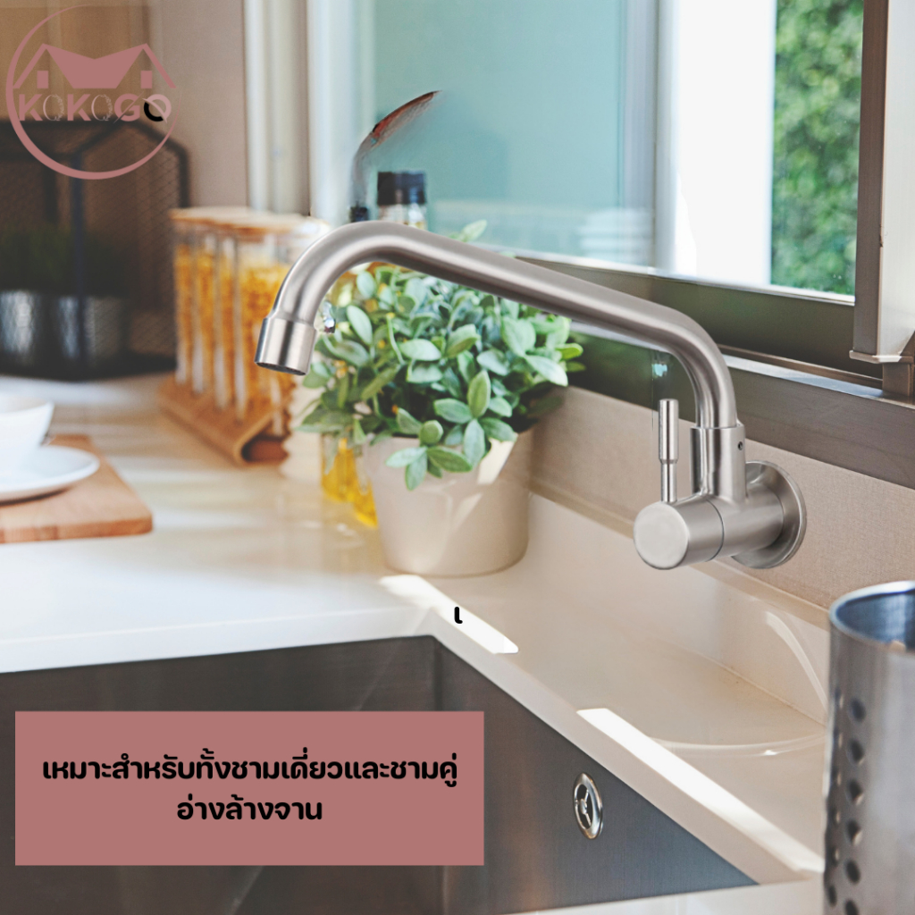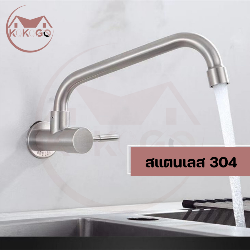?KOKOGO?ก๊อกซิงค์ แบบติดผนัง สแตนเลสแท้!! ล้างจานง่าย หมุนได้ 360 องศา ไม่เป็นสนิม พร้อมส่ง