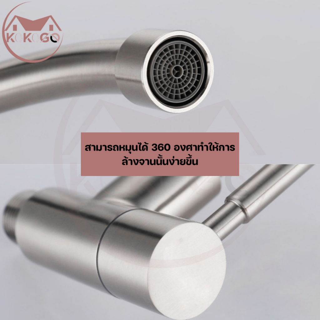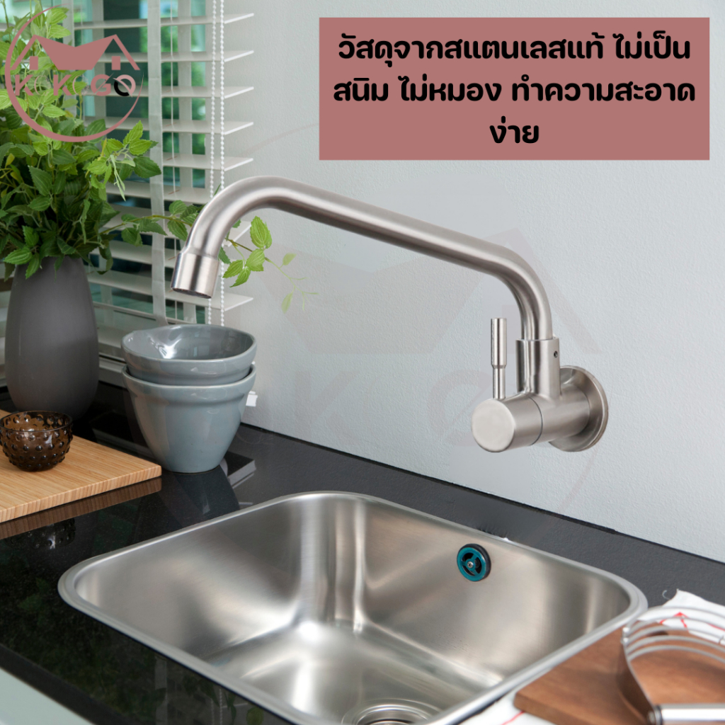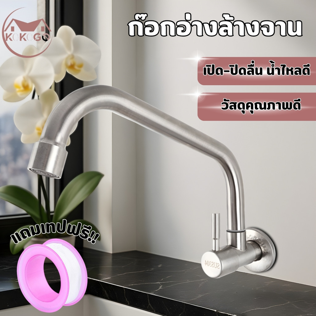 ?KOKOGO?ก๊อกซิงค์ แบบติดผนัง สแตนเลสแท้!! ล้างจานง่าย หมุนได้ 360 องศา ไม่เป็นสนิม พร้อมส่ง