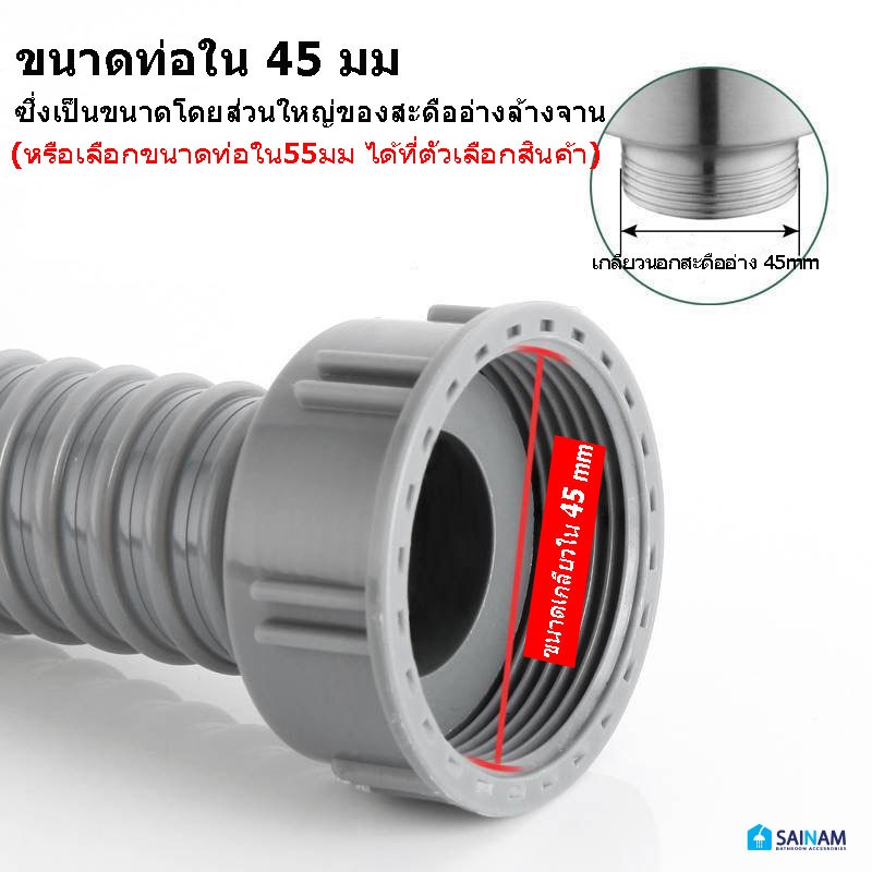 ??ส่งไวจากกรุงเทพ SAINAM [80-150cm] ท่อน้ำทิ้งอ่างล้างจาน สายต่อท่อน้ำทิ้ง ท่อย่นอ่างล้างจาน เกลียวในขนาด45-55มม.
