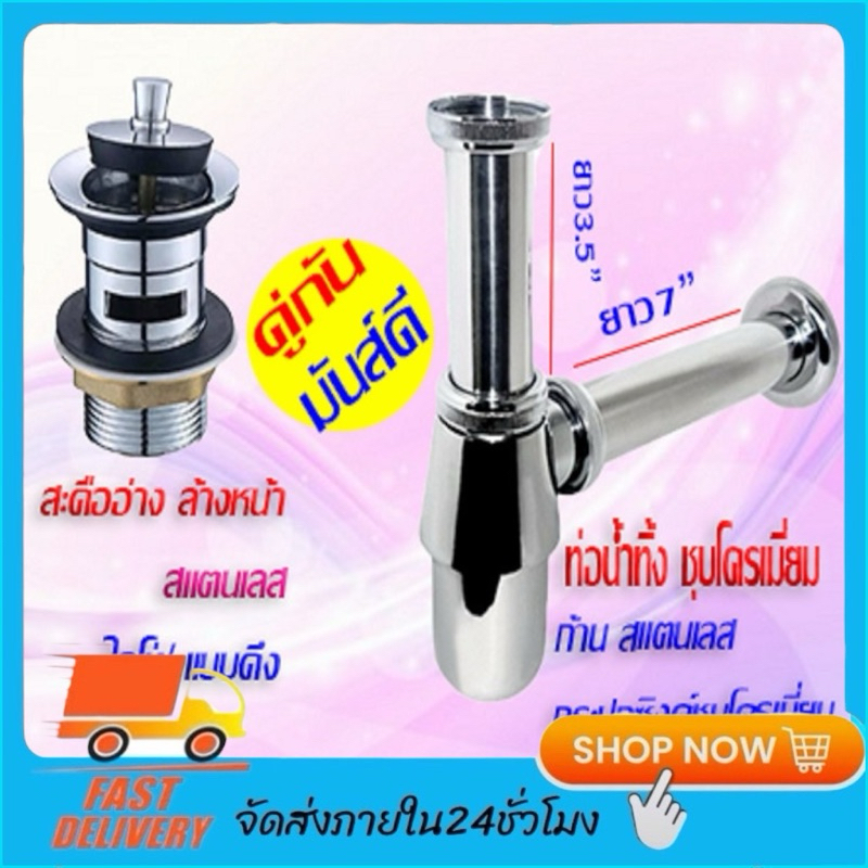 ??[[ส่งไวจากไทยกรุงเทพ]] อ่างล้างหน้า/ ชุดท่อน้ำทิ้งกระปุก พร้อมสะดืออ่างล้างหน้า สแตนเลส มีให้เลือก 2แบบ