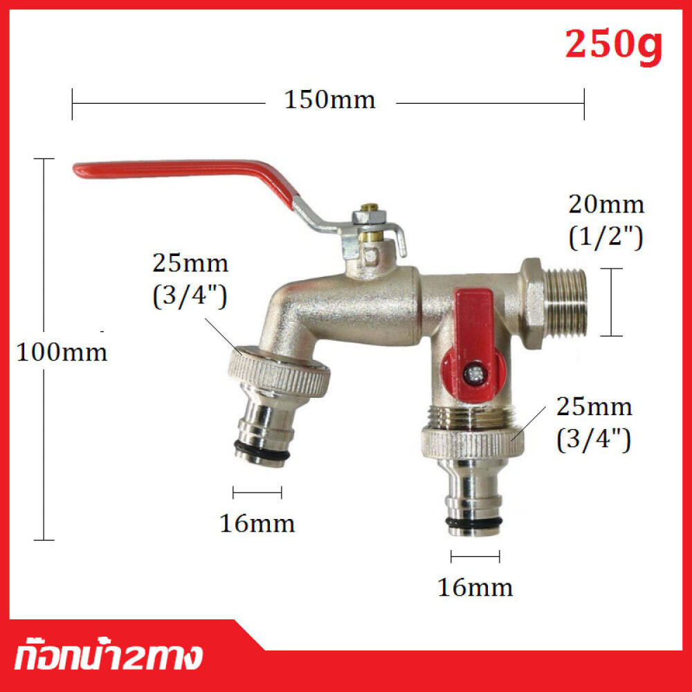 พร้อมส่ง ก๊อกสนามสองทาง ก๊อก ก๊อกสนาม2ทาง ก๊อกน้ำ2ทาง ก๊อก2วาล์ว ก๊อกสองทาง ขนาด 1/2 นิ้วขายดี ใช้ดี
