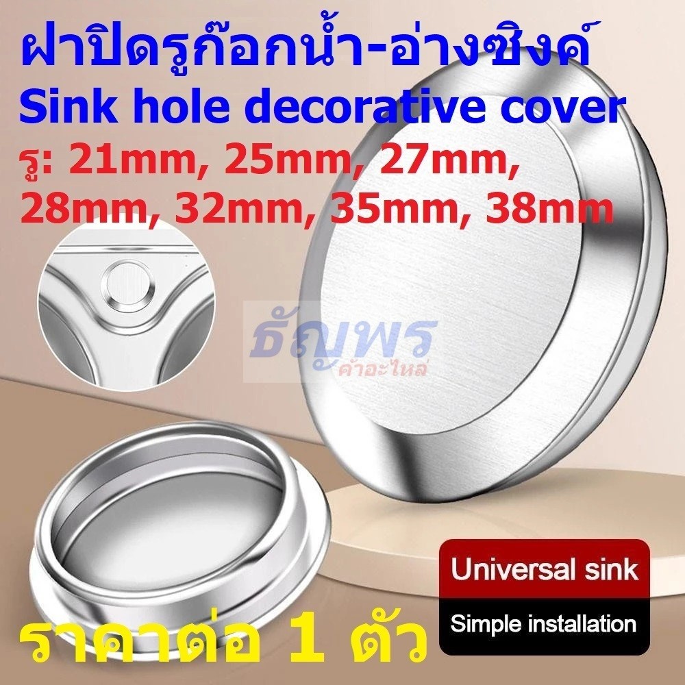 ฝาปิด จุกปิด ปลั๊กอุด รู ก๊อกน้ำ อ่างซิงค์ อ่างล้างจาน Sink Hole Decorative Cover #SHDC-1 (1 ตัว)