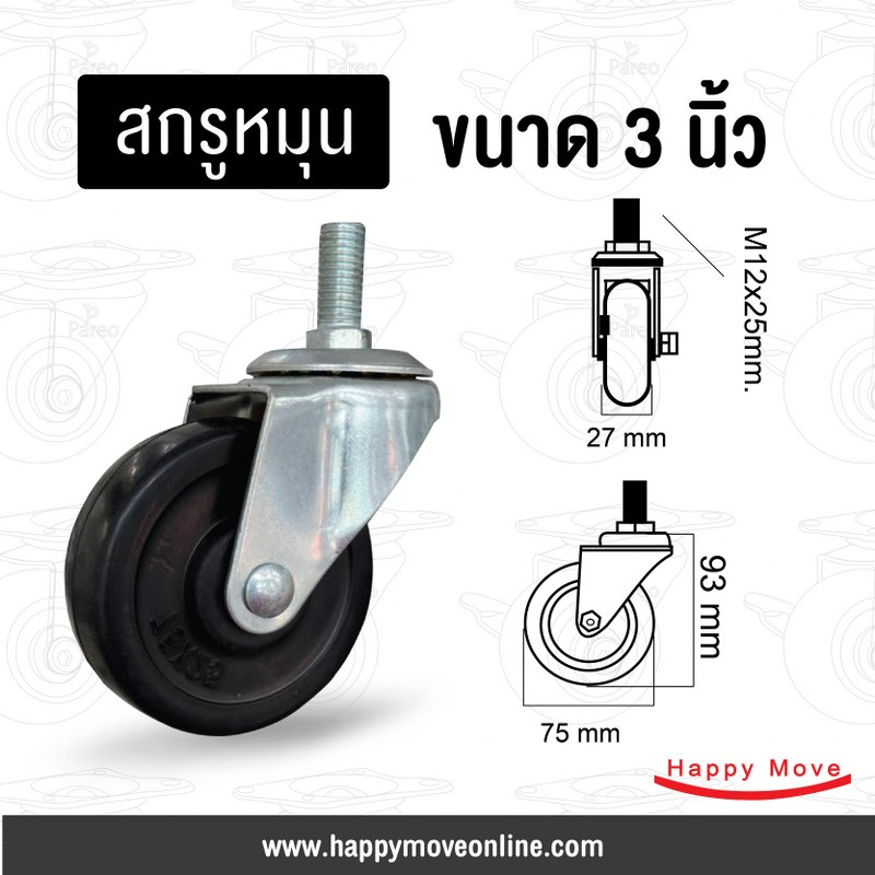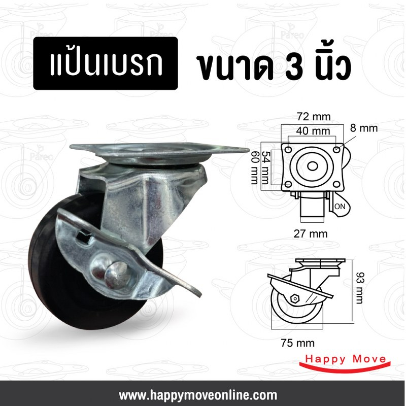 ล้อพียู Heavy duty ขนาด 3นิ้ว แป้นหมุน/เบรค รับน้ำหนัก300โล/ล้อ