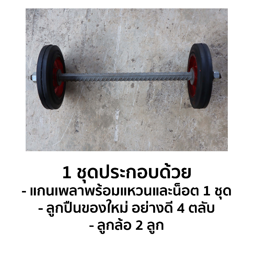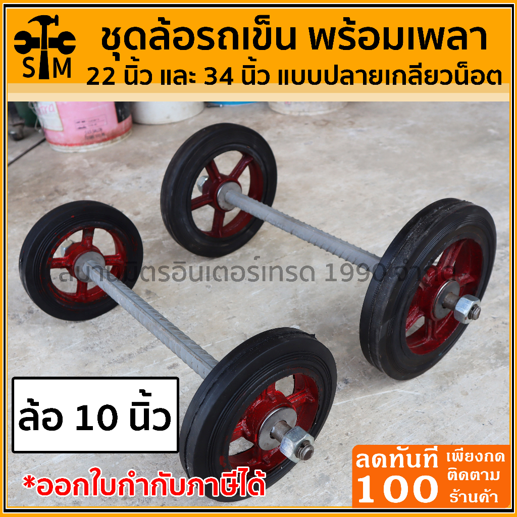 ล้อรถเข็น ชุดล้อรถเข็น เพลา1นิ้ว ยาว 23 และ 34 นิ้วพร้อมแหวนและน็อต 1เส้น + ลูกปืน 4ตลับ + ล้อ 10 นิ้ว
