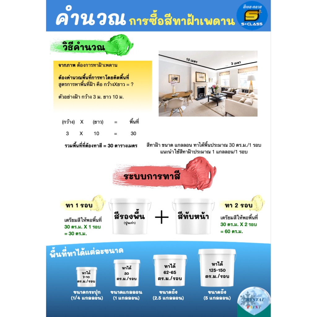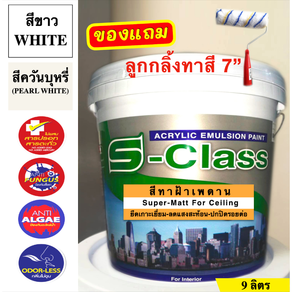 เอสคลาส สีทาฝ้าเพดาน ชนิดด้าน ขนาดถัง 9 ลิตร มี 2 เฉด (สีขาว/ขาวควันบุหรี่)