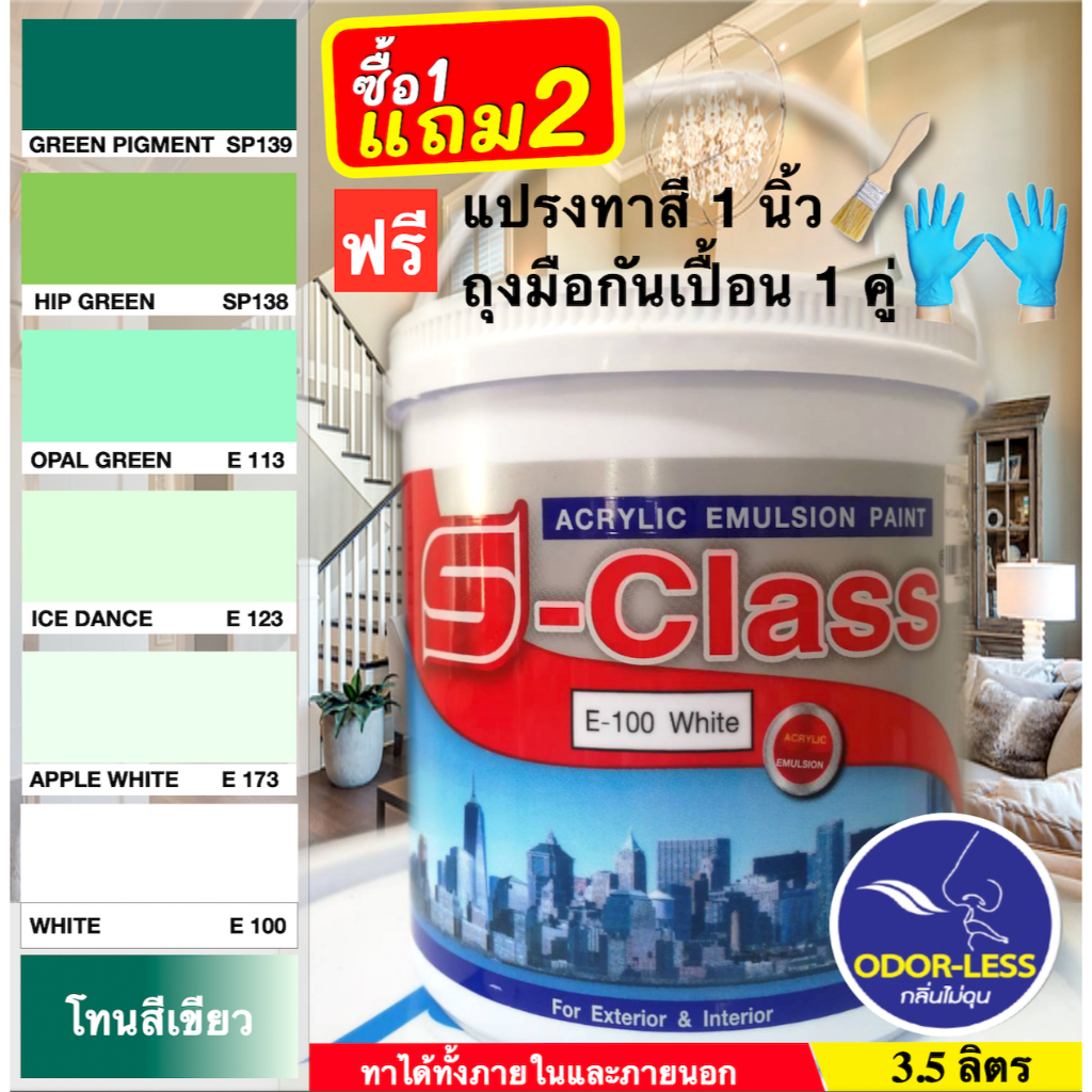 เอสคลาส สีทาบ้าน สำหรับทาภายนอกและภายใน สีน้ำอะคริลิค ขนาดแกลลอน 3.5 ลิตร เฉดสีเขียว ฟรีแปรงทาสี+ถุงมือกันเปื้อน