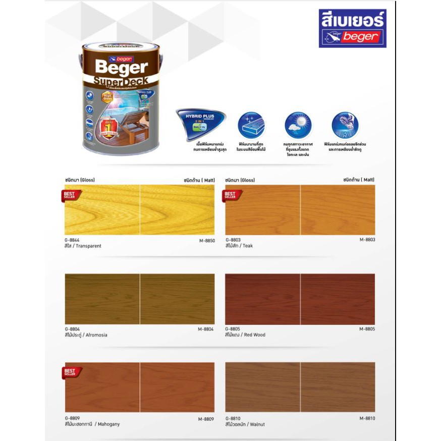 Beger DeckStain สีย้อมไม้เบเยอร์แบบด้าน ขนาดแกลลอน 3.785 ลิตร สีทาไม้ สีทาพื้นไม้