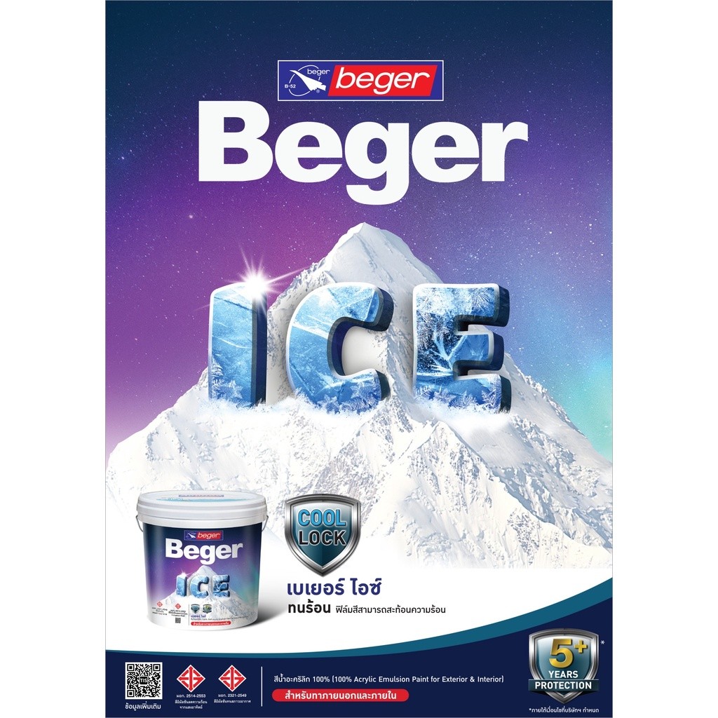 Beger ICE สีน้ำตาล ฟิล์มกึ่งเงา 9 ลิตร สีทาภายนอกและภายใน สีทาบ้านแบบเย็น ลดอุณหภูมิ เช็ดล้างทำความสะอาดได้