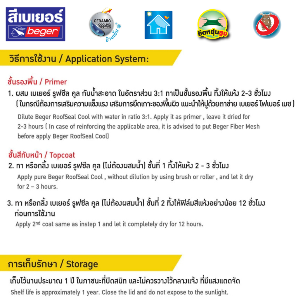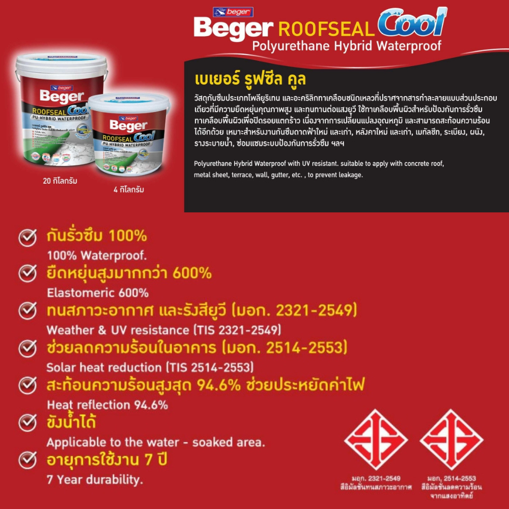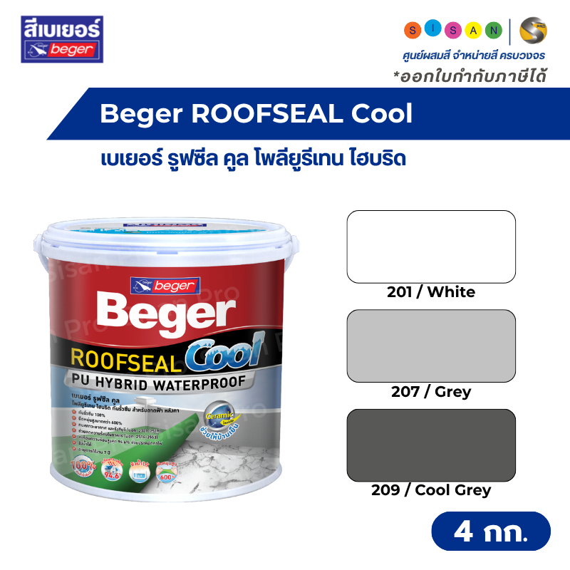 Beger ROOFSEAL Cool เบเยอร์ รูฟซีลคูล โพลียูรีเทน สีทากันรั่วซึมสำหรับดาดฟ้าหลังคา ขนาด 4 กก.