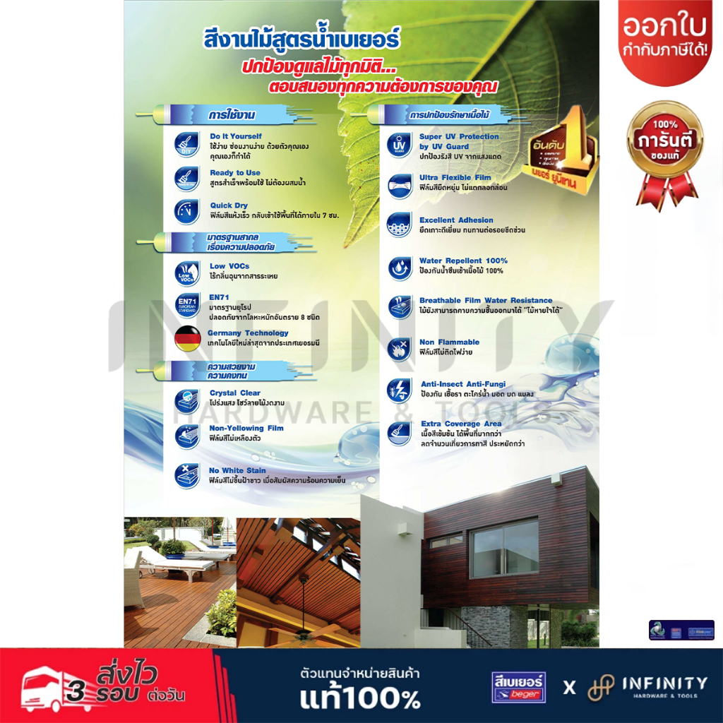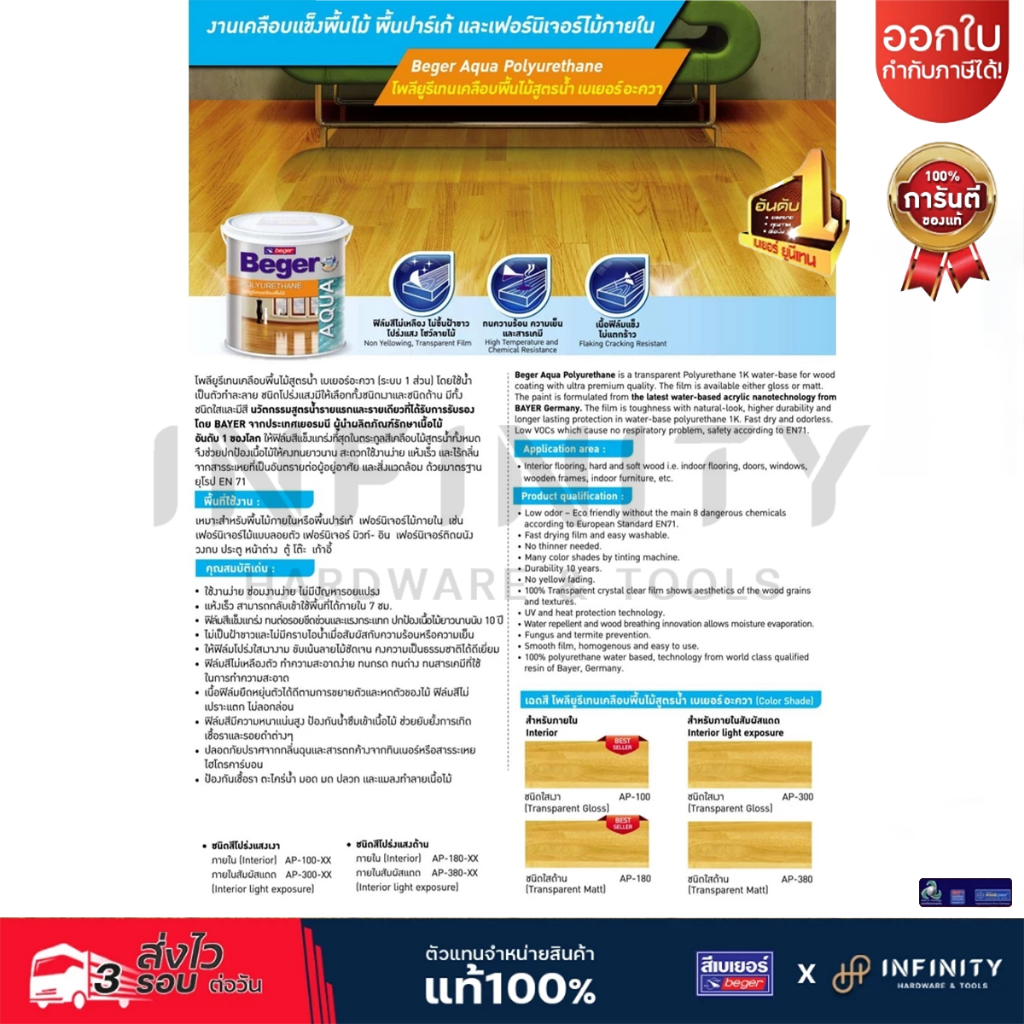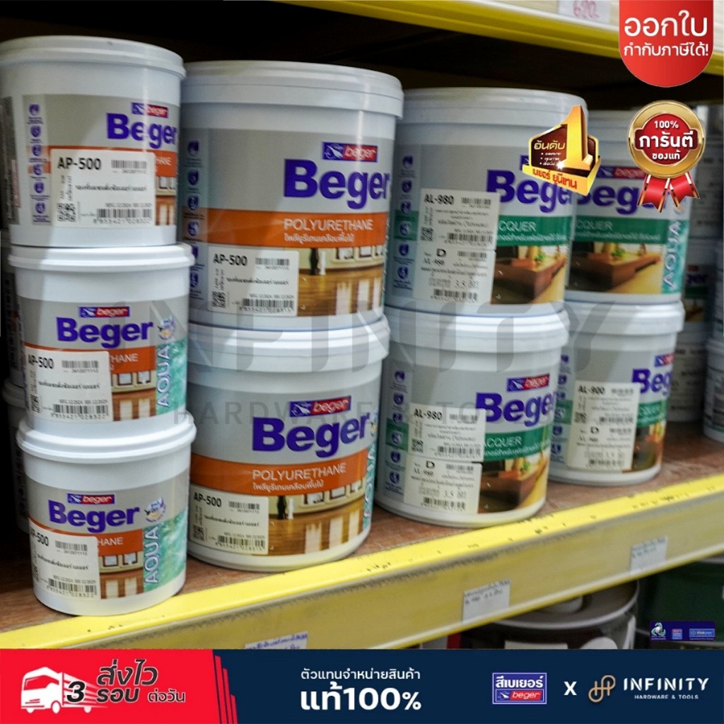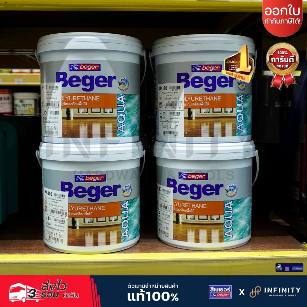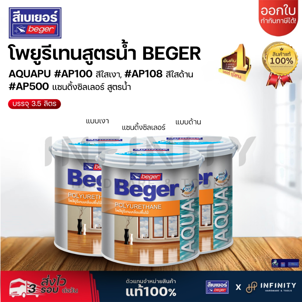 BEGER AQUA โพลียูริเทน สูตรน้ำ ภายในสีใส แบบเงาและแบบด้าน AP-100, AP-180, AP-500 (แซนดิ้ง ซีลเลอร์) ขนาด 3.5 ลิตร