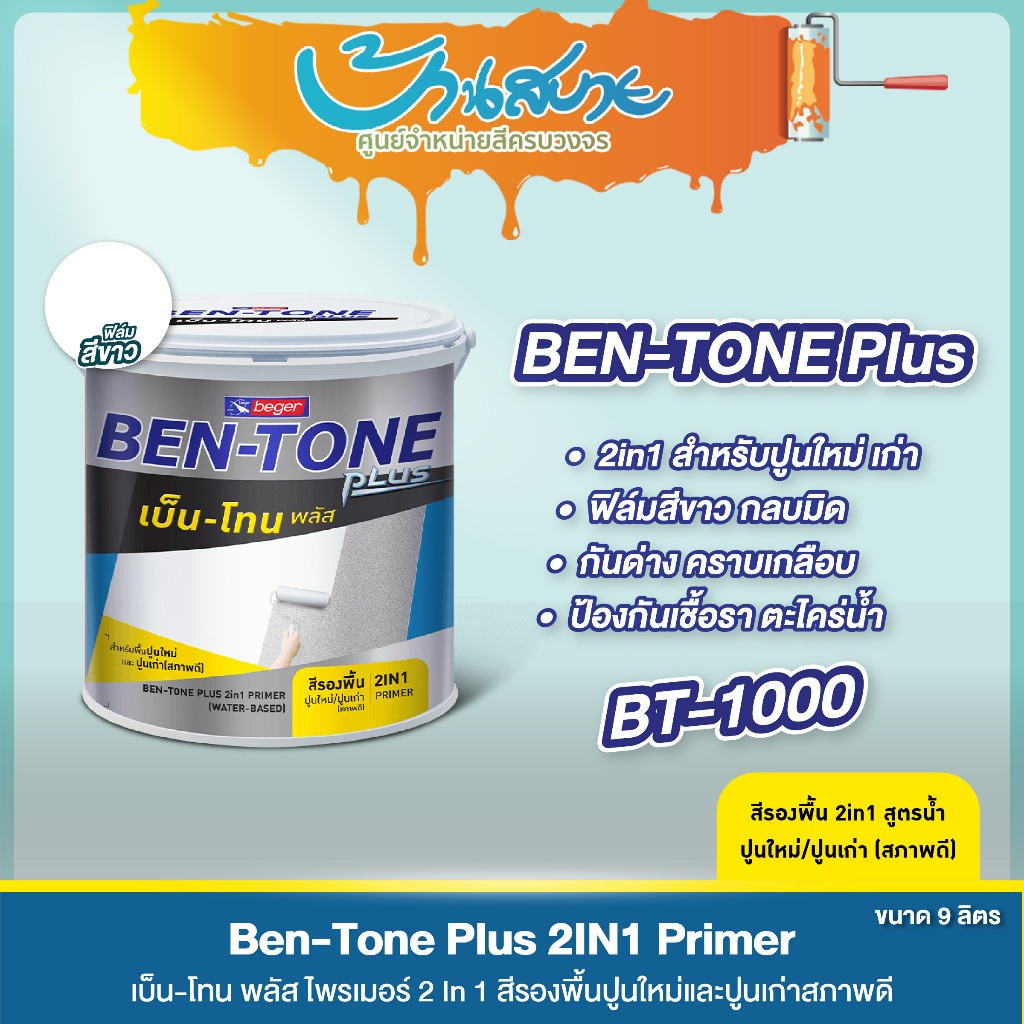 Beger BT-1000 ขนาด 9 ลิตร เบนโทน สีรองพื้นปูนอเนกประสงค์ สูตรน้ำ 2in1 ปูนเก่า ปูนใหม่ กลิ่นอ่อน