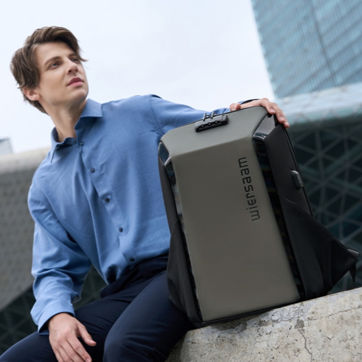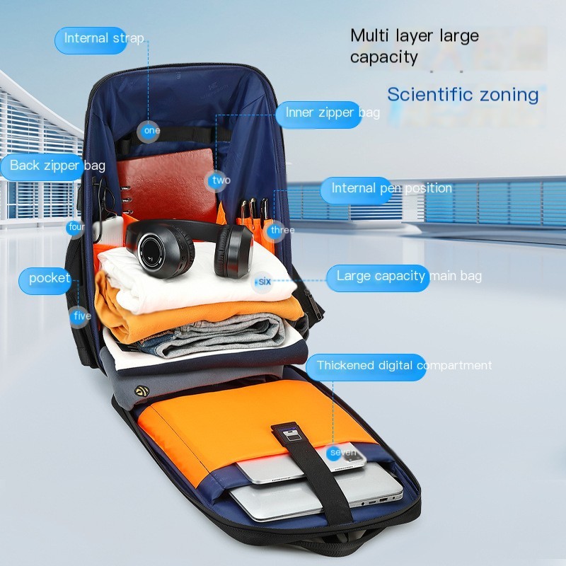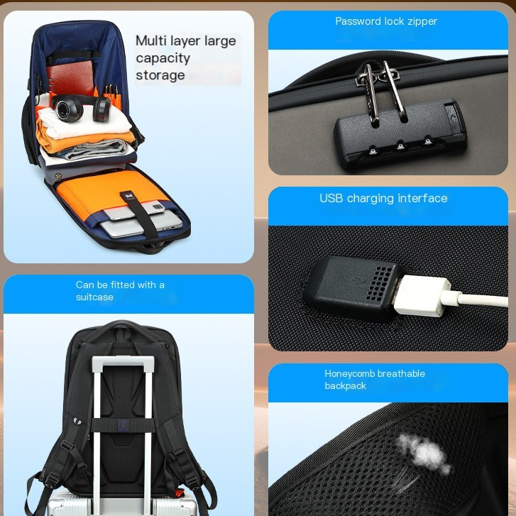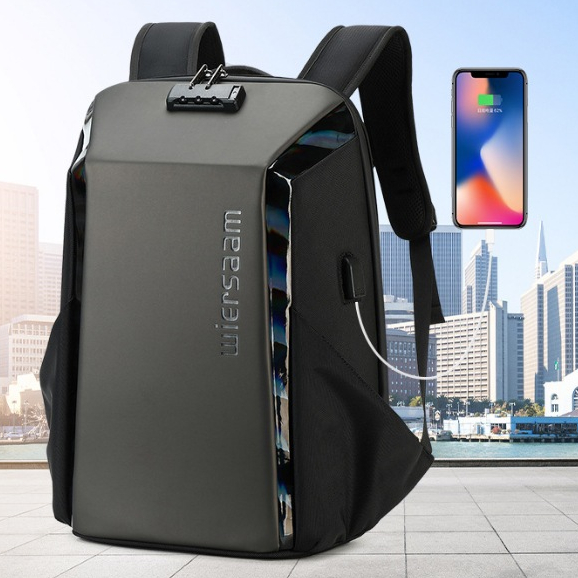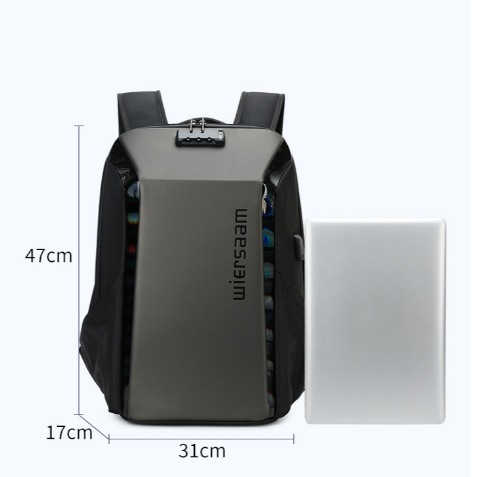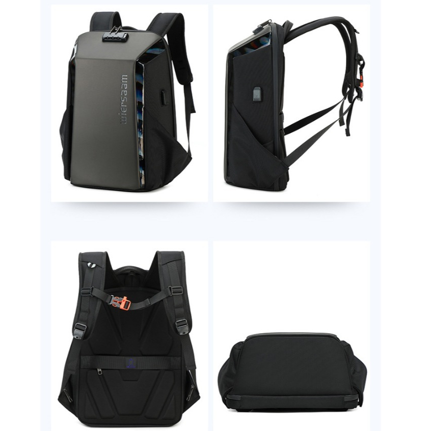 BONEMAN ป้องกันการโจรกรรมกันน้ำแฟชั่นผู้ชายสแควร์แล็ปท็อปกระเป๋าเป้สะพายหลัง 18 นิ้วชาร์จ USB