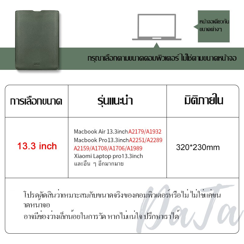 กระเป๋าโน๊ตบุ๊คหนัง Fashion กระเป๋าแล็ปท็อป กันกระแทก กันรอยขีดข่วน กันน้ำกันน้ำมันได้ทำความสะอาดง่าย