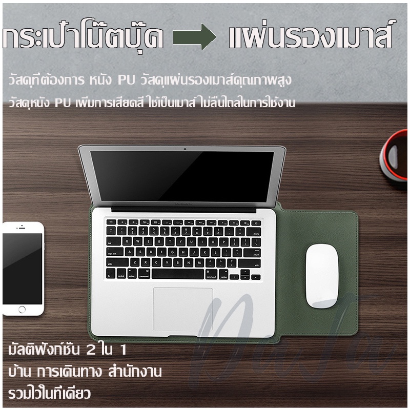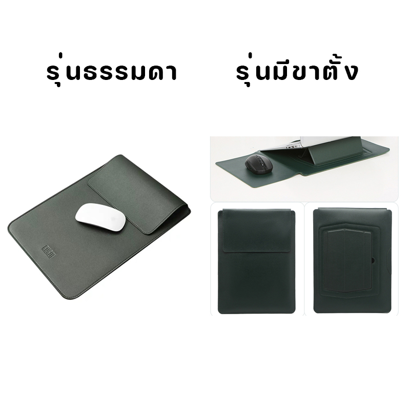 กระเป๋าโน๊ตบุ๊คมีขาตั้ง รุ่นตีนตุ๊กแก หนังPUสีด้าน เหมาะสมกับmacbook air/pro asus huawei