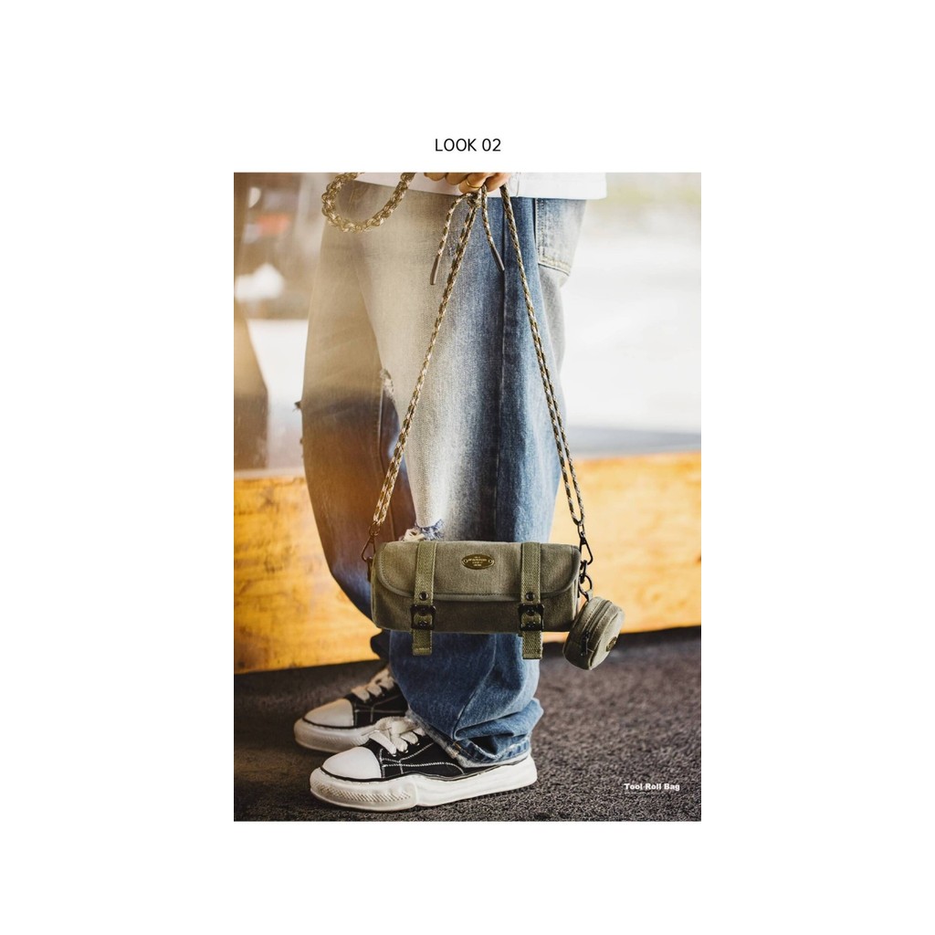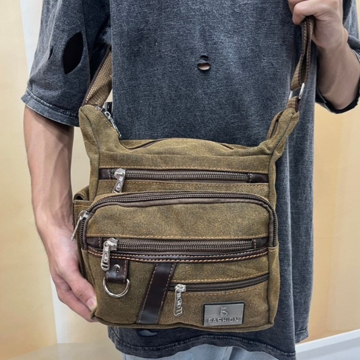 อาหาร แบรนด์อเมริกันย้อนยุคผ้าใบกระเป๋าทรงกระบอก 2025 ใหม่ผสมแนวทแยงข้ามกระเป๋าใบเล็กสําหรับผู้ชาย