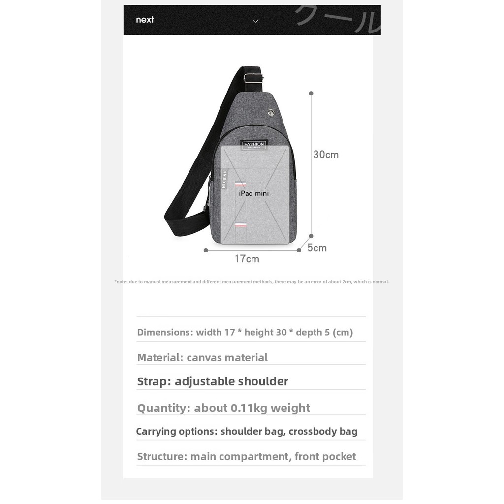 สินค้าพร้อมส่งในไทย กระเป๋าคาดหน้าอก คาดเอว สะพายข้าง ขนาดกระทัดรัด ผ้าอ๊อกซ์ฟอร์ด ใช้ได้ทั้งชายและหญิง