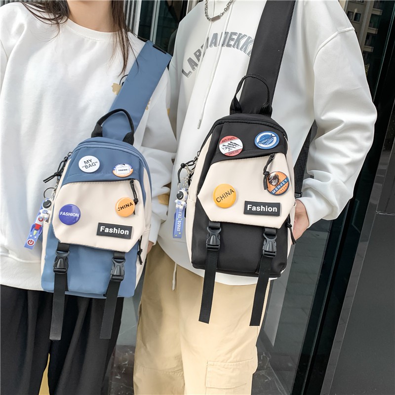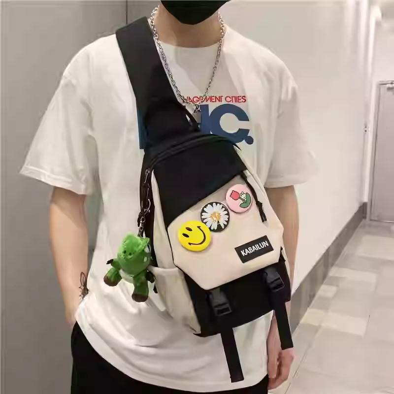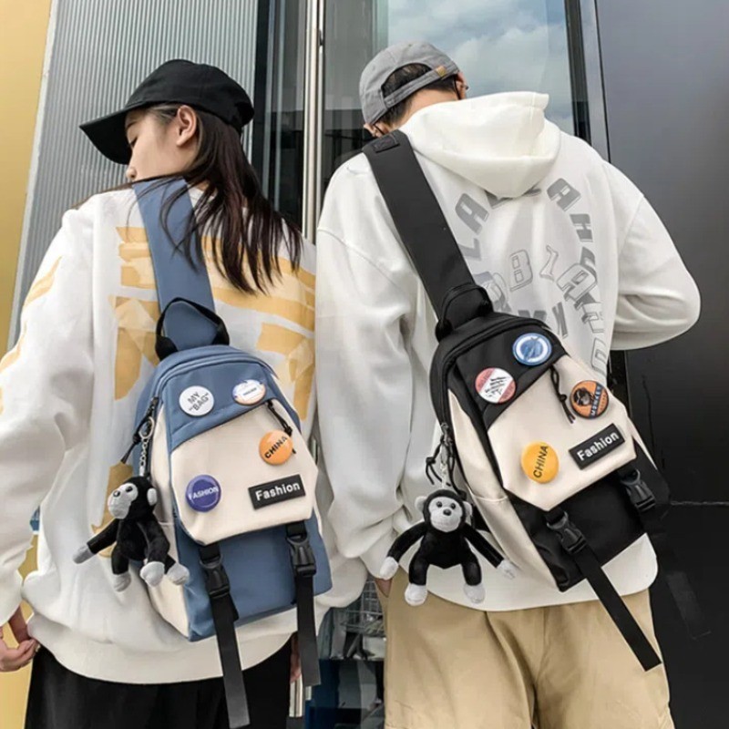 สไตล์เกาหลี กระเป๋าสะพายข้างผู้ชาย กระเป๋าสะพายนักเรียนแบบสบาย ๆ ผู้หญิง กระเป๋าสะพายข้างความจุขนาดใหญ