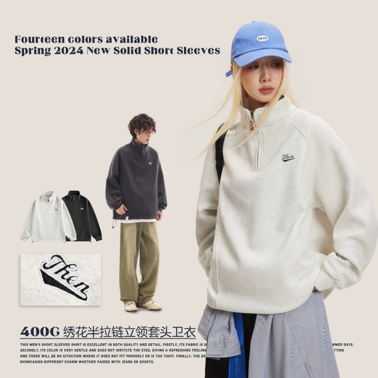 Asrv อเมริกันผู้ชายและผู้หญิงหลวมสบายๆกีฬา หมวก ฤดูใบไม้ร่วงที่เรียบง่ายเย็บปักถักร้อยปกครึ่งซิป หมวก