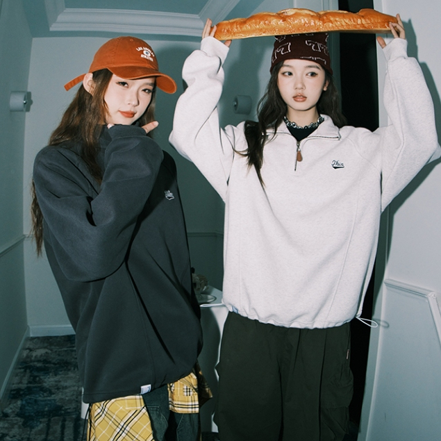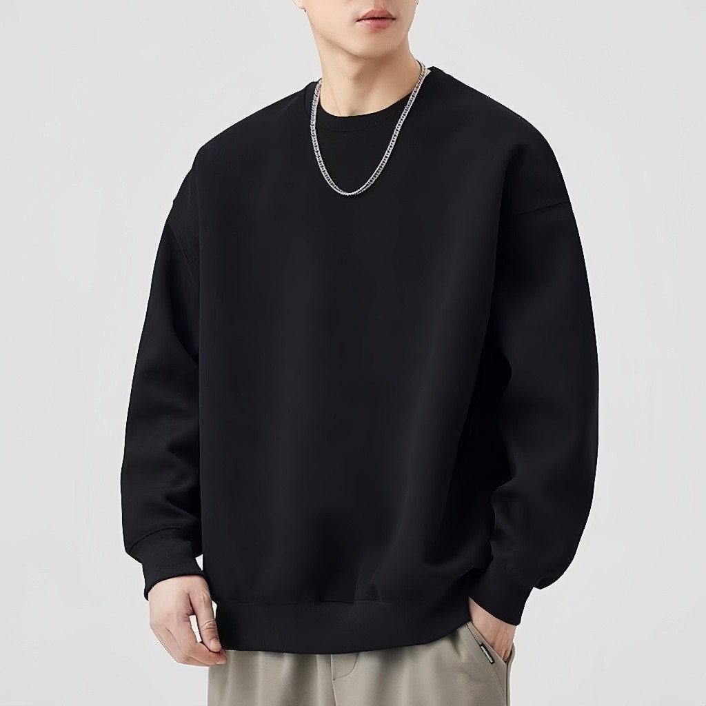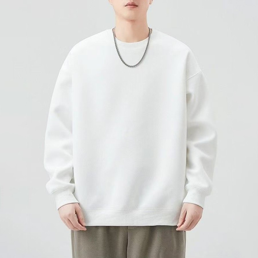 CLIFFเสื้อสเวตเตอร์คอกลมหนัก พักผ่อน ผ้าฝ้ายแท้ เสื้อชั้นในสีเดียว สไตล์คู่