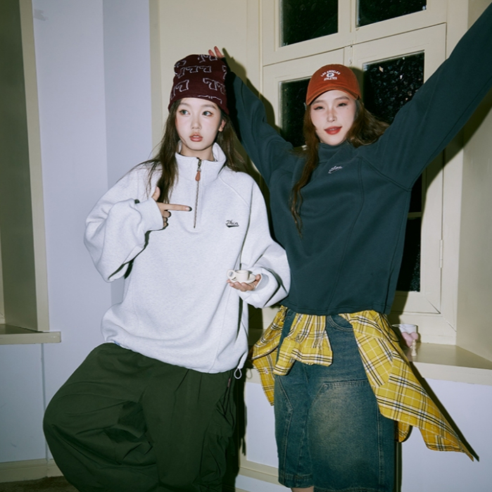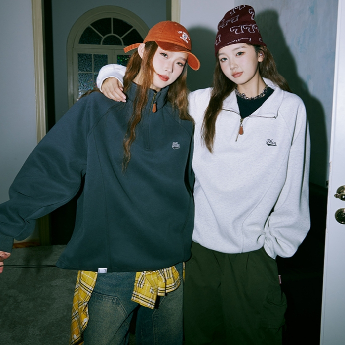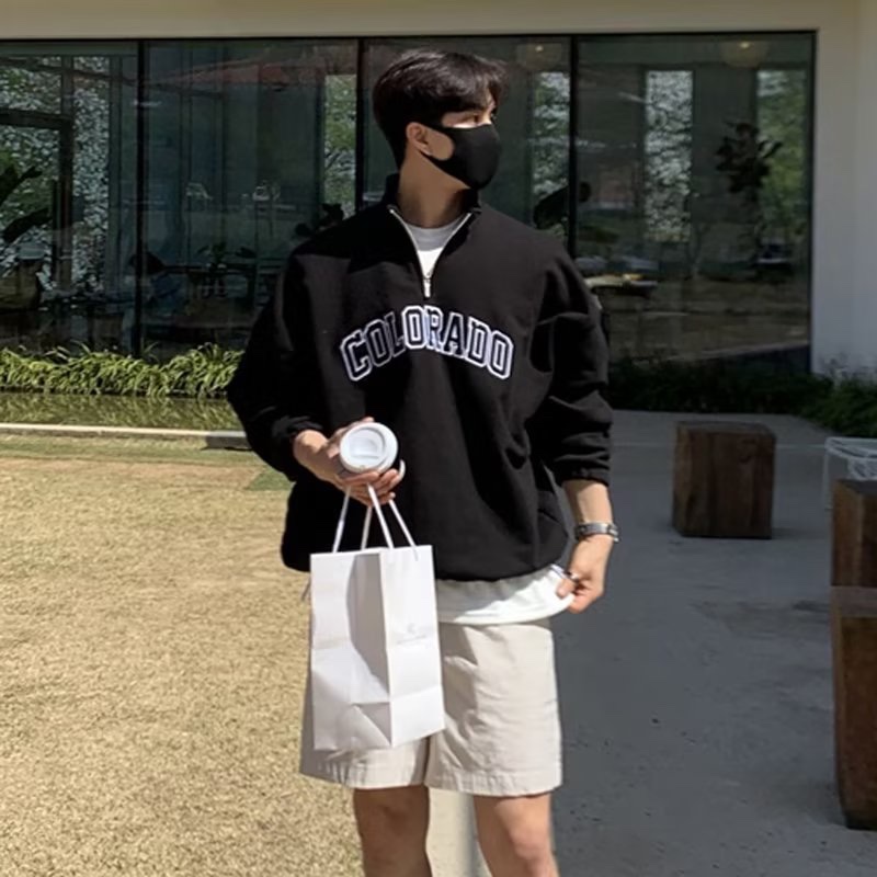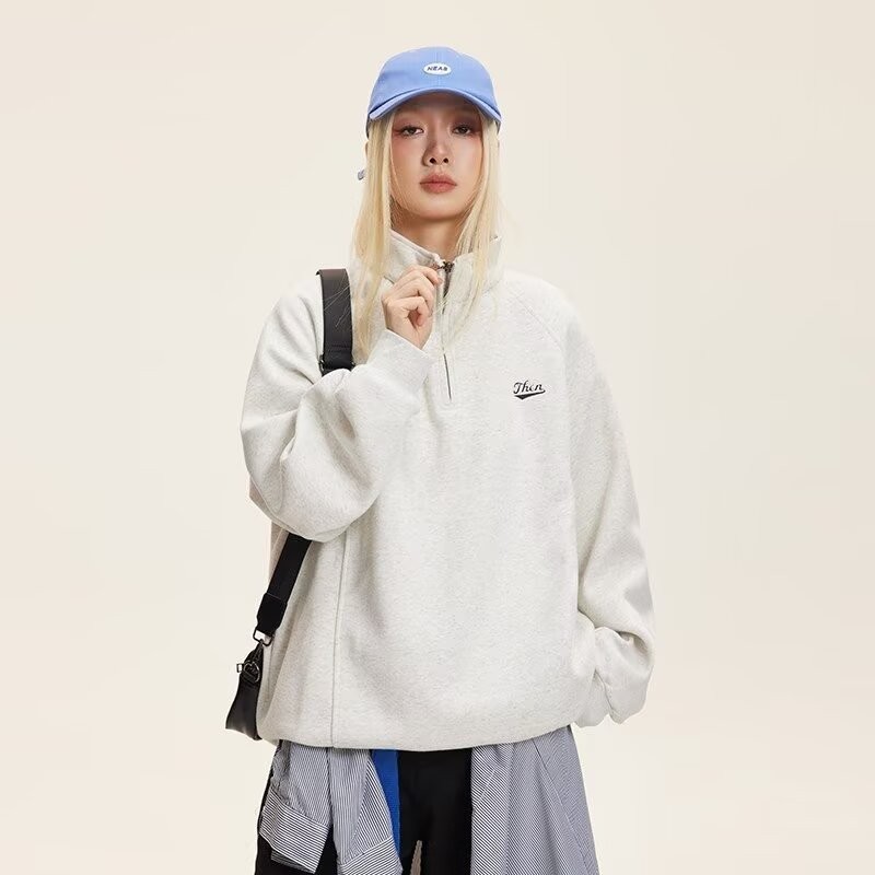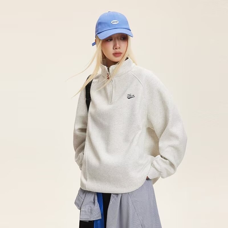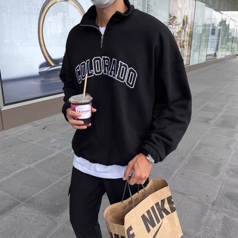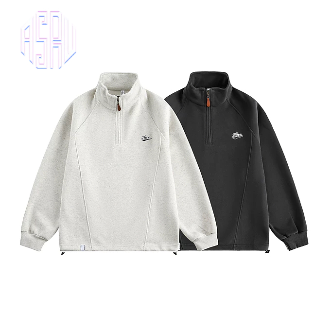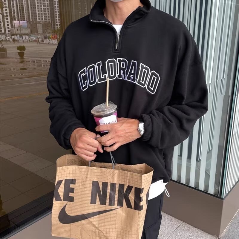 American Retro Half Zipper Stand-Up Collar Corduroy Sweatshirt Mens Fleece Warm cleanfit Top Jacket