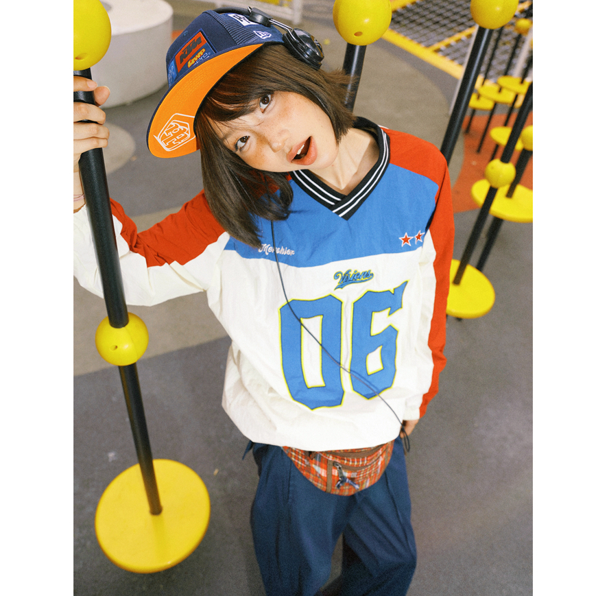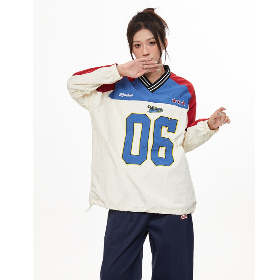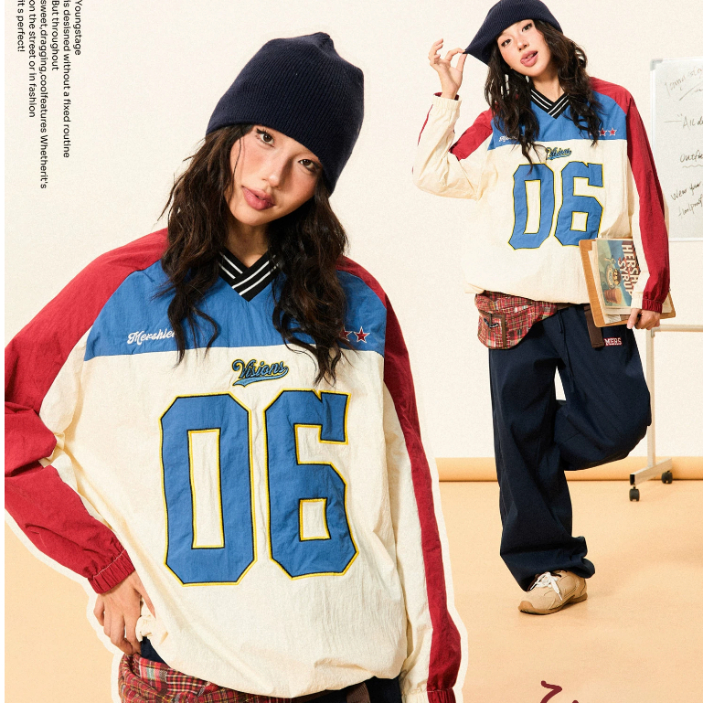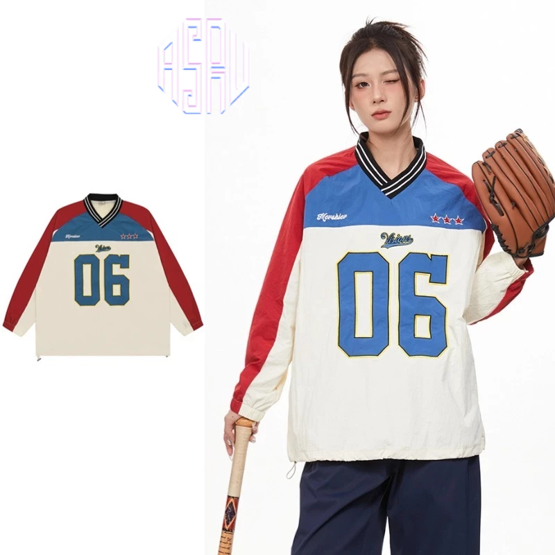 Asrv ฤดูใบไม้ร่วงประกบสีคมชัดเสื้อกีฬาแขนยาวอเมริกัน สูง ถนน คอวีผู้ชายและผู้หญิงเสื้อฮู้ดดิจิตอล
