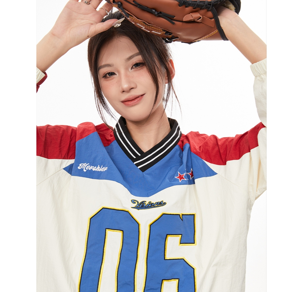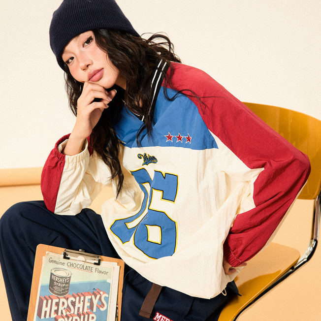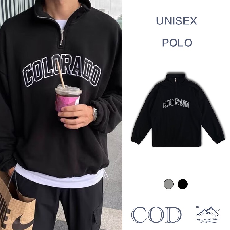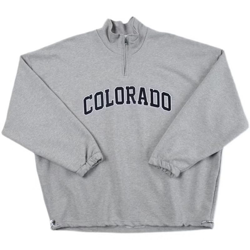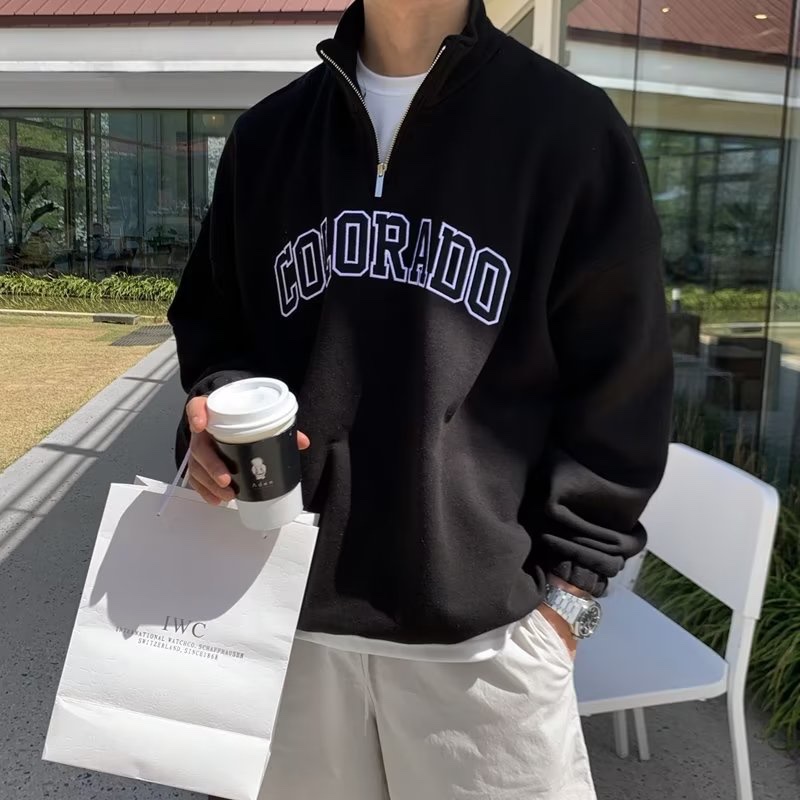BS |Polo เสื้อสเวตเตอร์ครึ่งซิปรูปแบบอเมริกันสำหรับผู้ชาย พิมพ์ลายตัวอักษร สวมใส่คล้ายเสื้อแจ็คเก็ต ไม่มีหมวกและคอนูนขึ้นเล็กน้อย