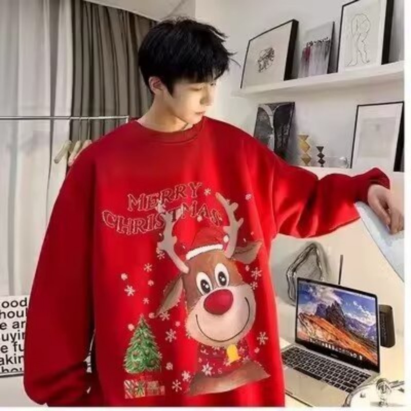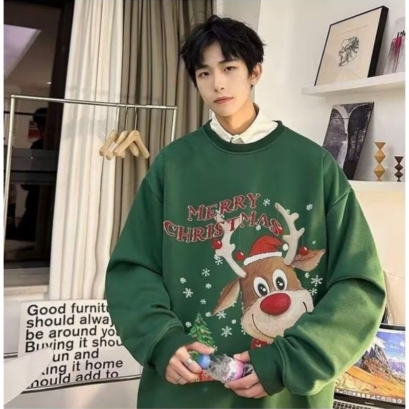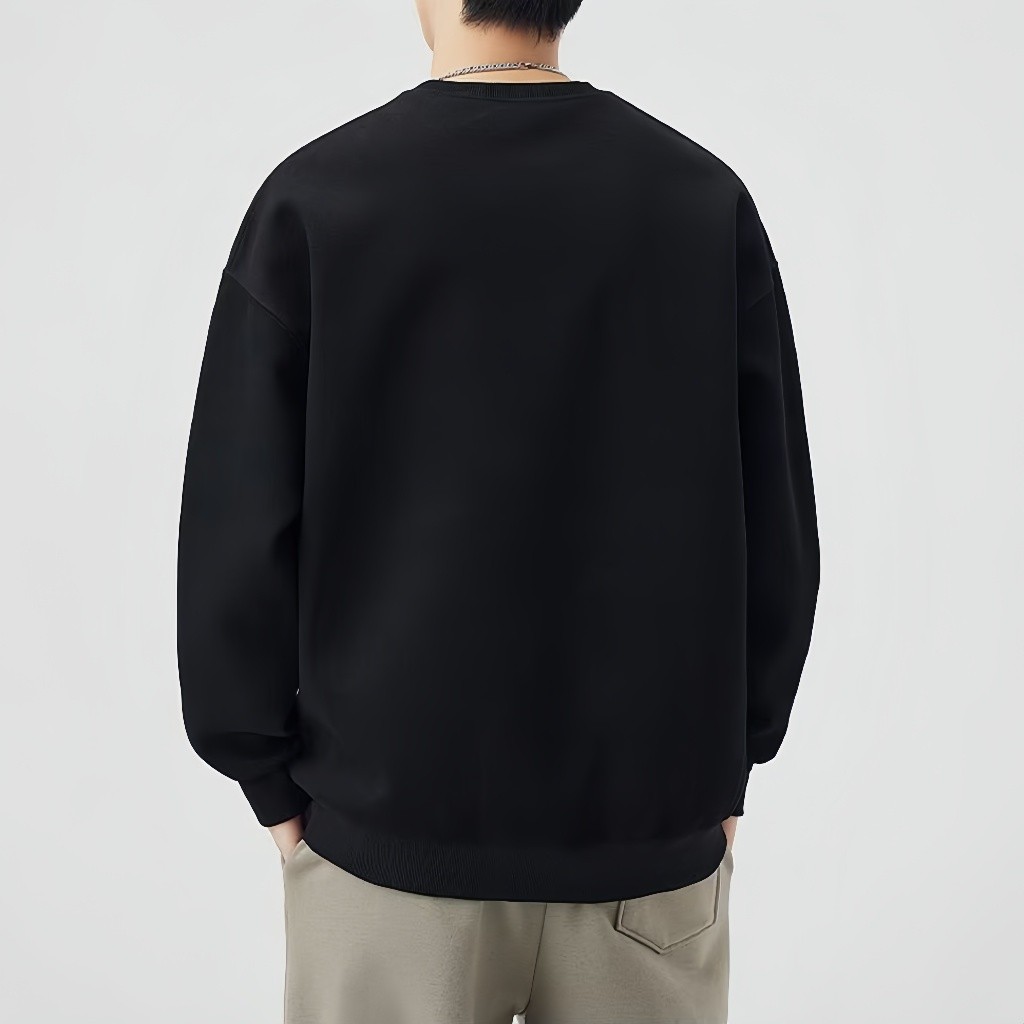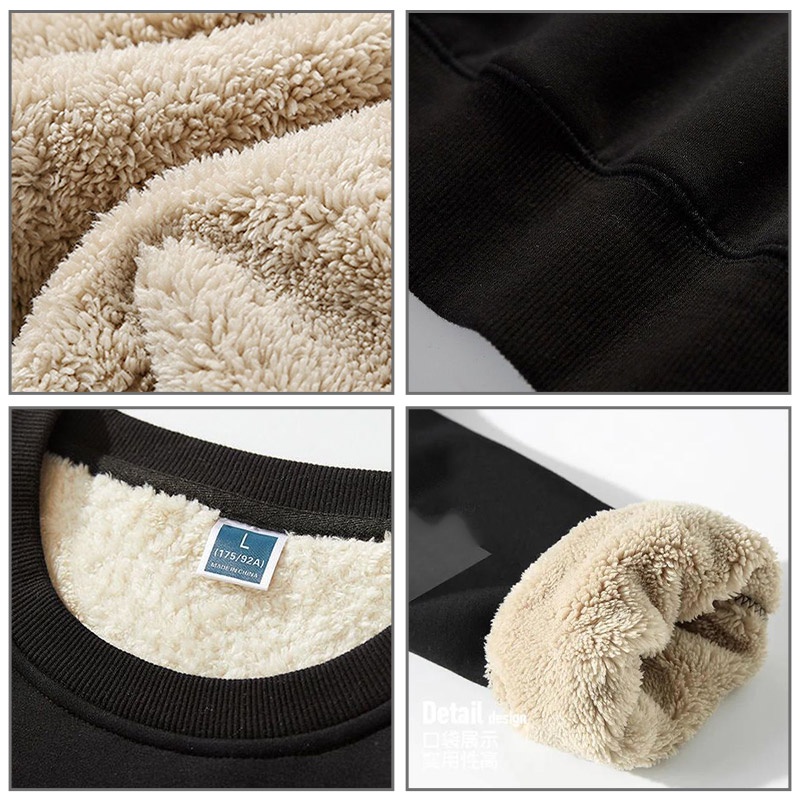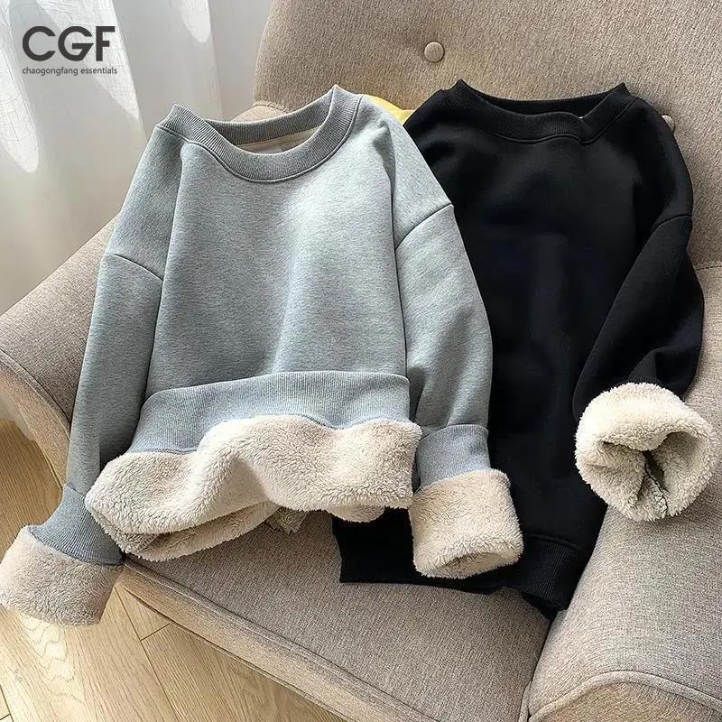 Chaogongfang เสื้อสเวตเตอร์คอกลมลำลองสีทึบทุกการแข่งขันขนแกะบวกกำมะหยี่เสื้อกันหนาวหนา