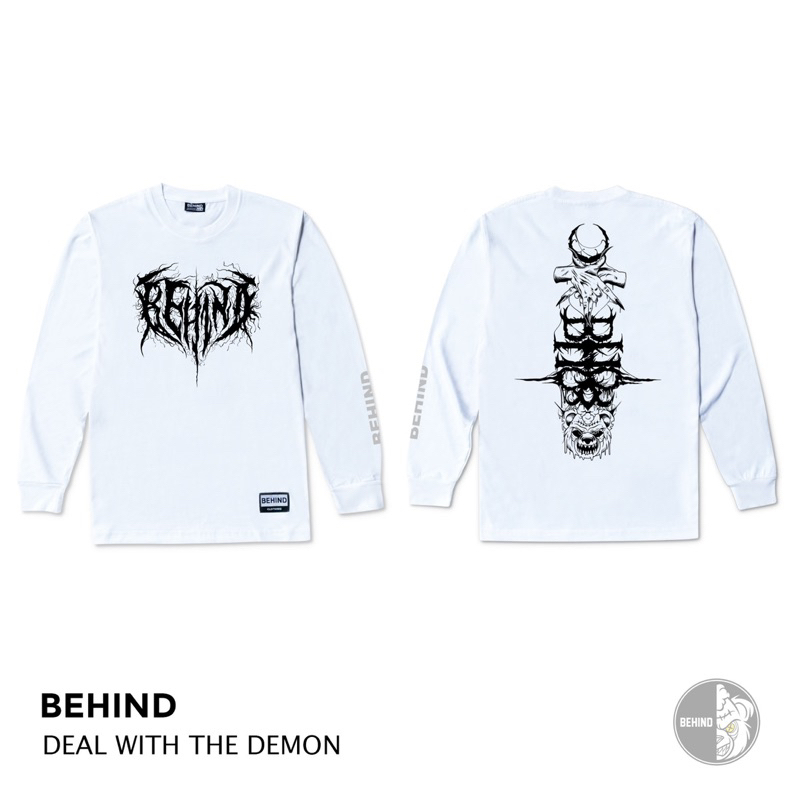 BEHIND เสื้อยืด แขนยาว “ DEAL WITH THE DEMON “ แนวสตรีท เสื้อยืดชาย หญิง