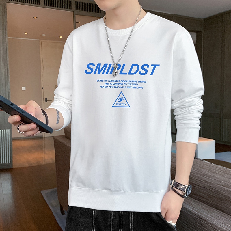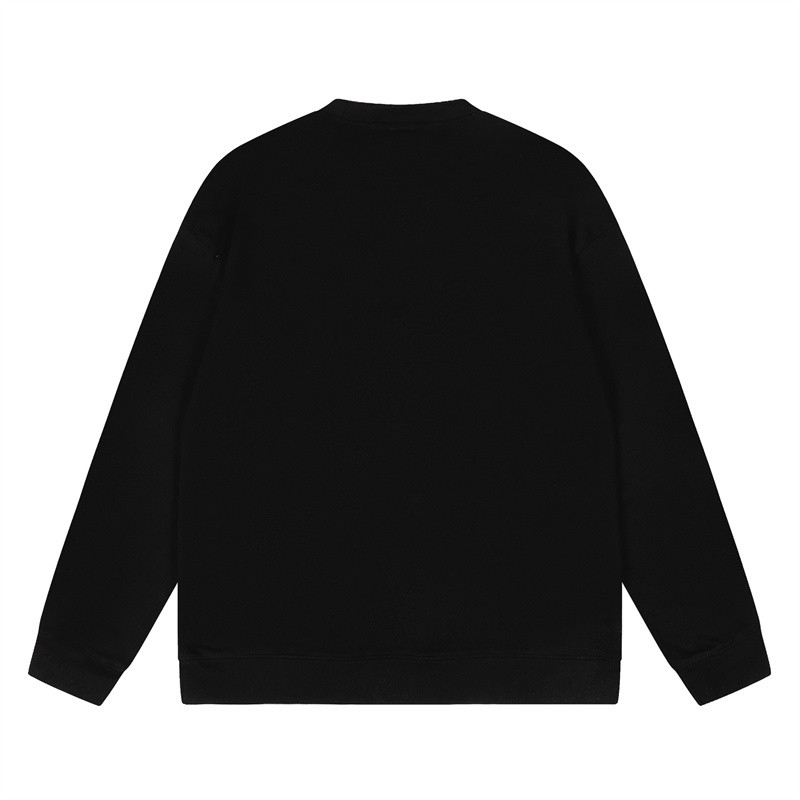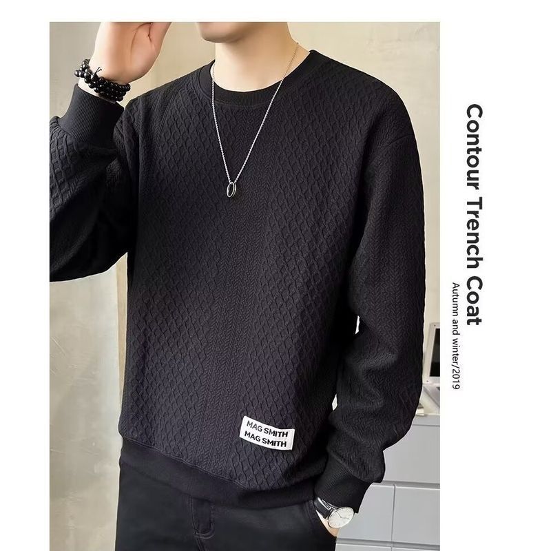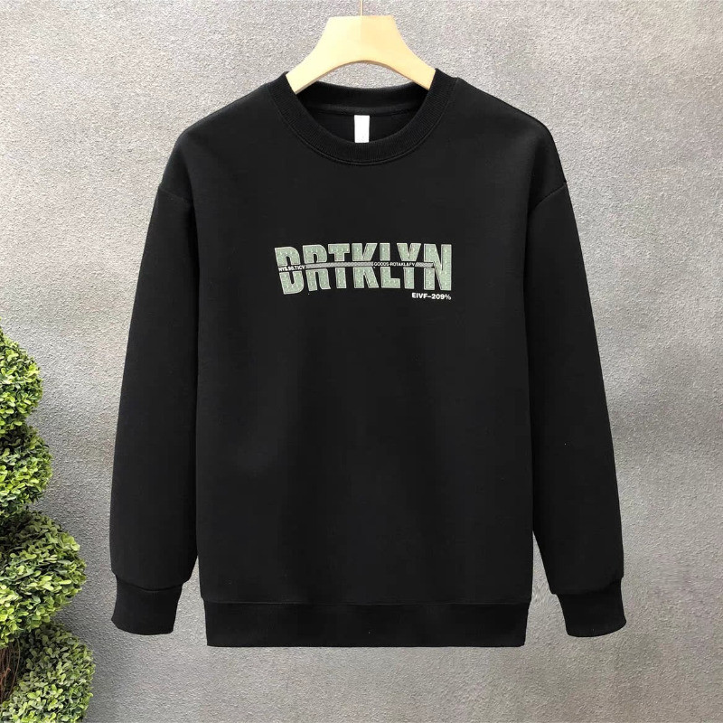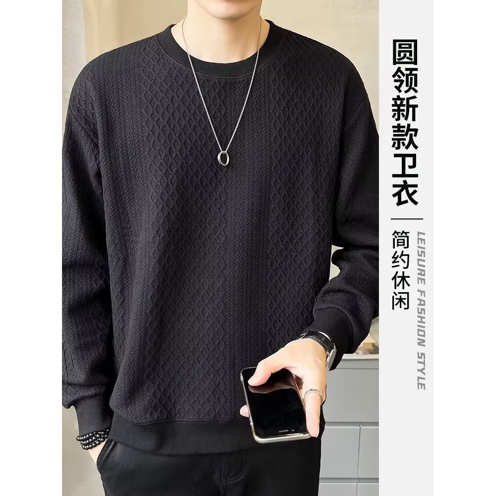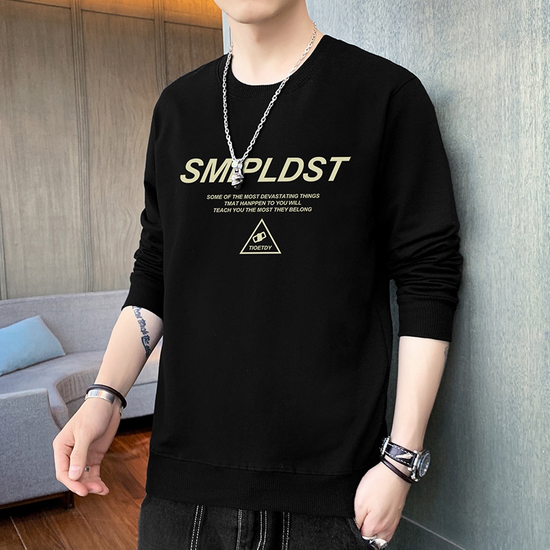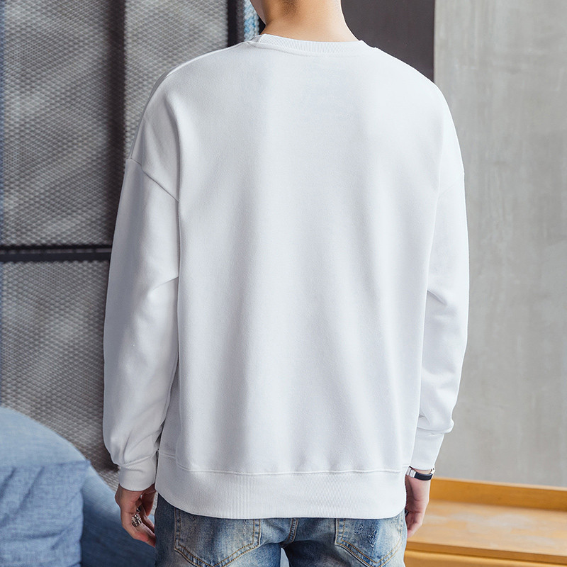 เสื้อยืดสไตล์ใหม่ผู้ชายแขนยาวหลวมสบาย ๆ คอกลมเสื้อกันหนาวสีดำ