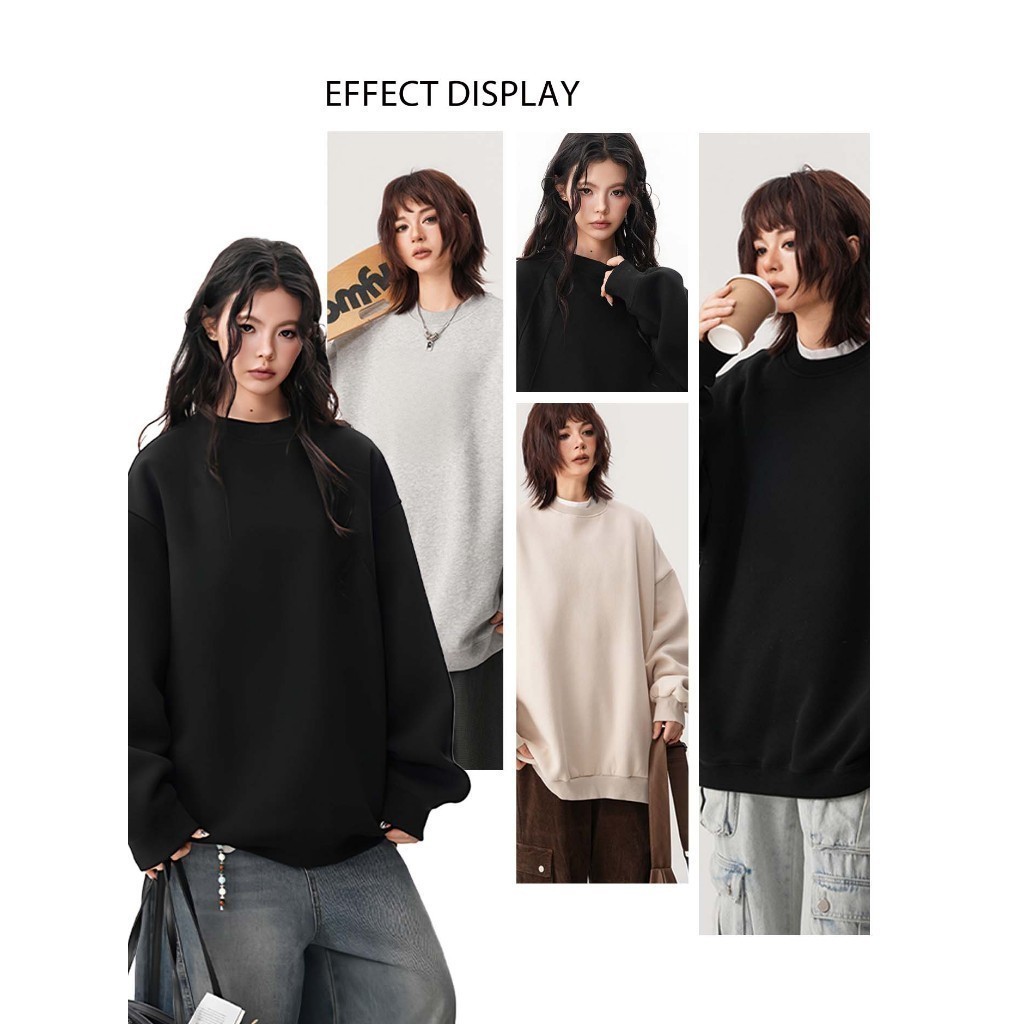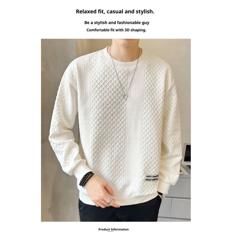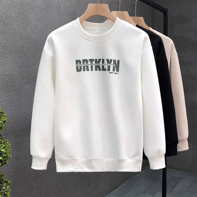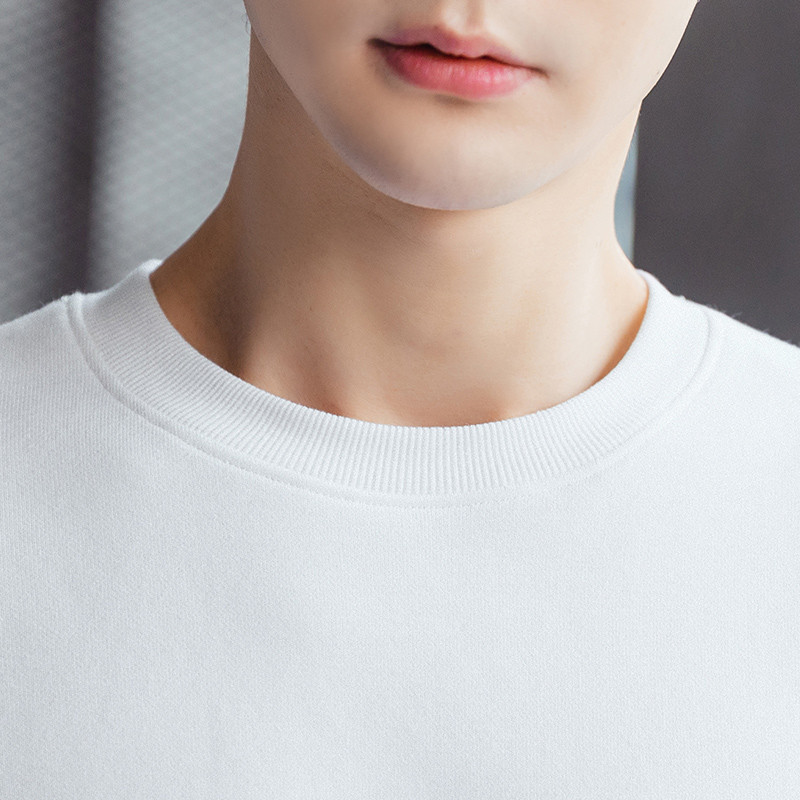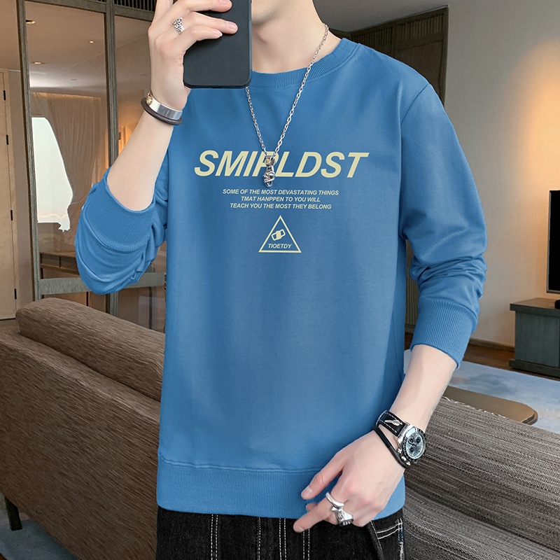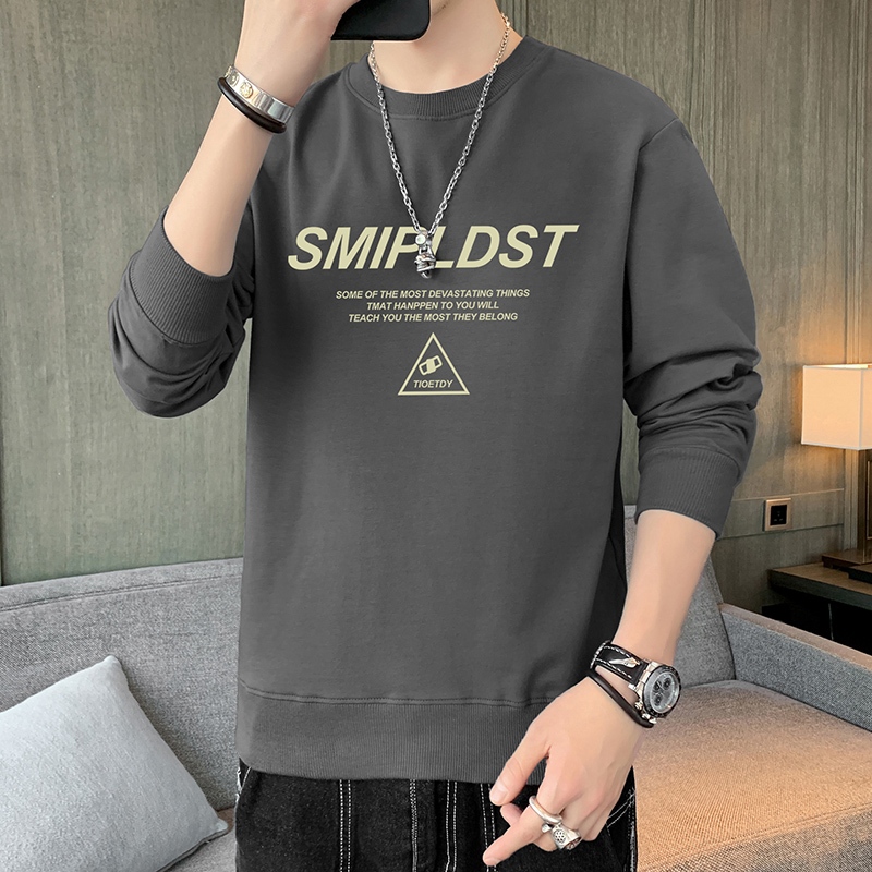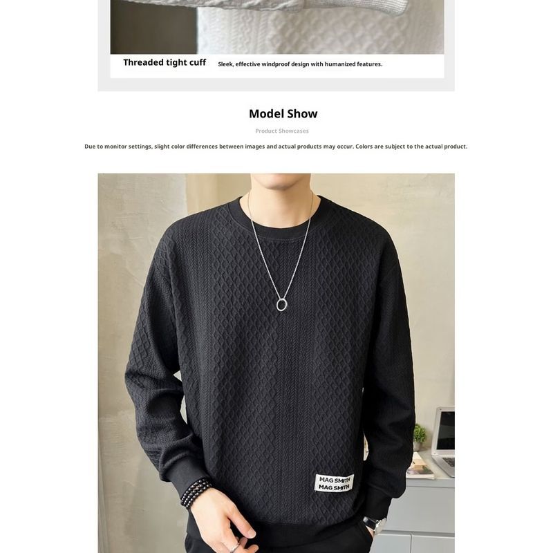 เสื้อยืดสไตล์ใหม่ผู้ชายแขนยาวหลวมสบาย ๆ คอกลมเสื้อกันหนาวสีดำ