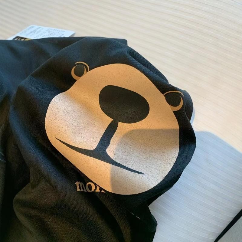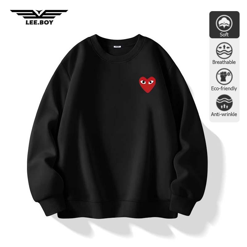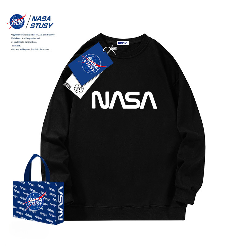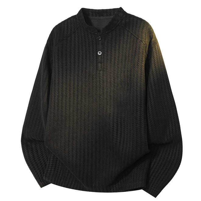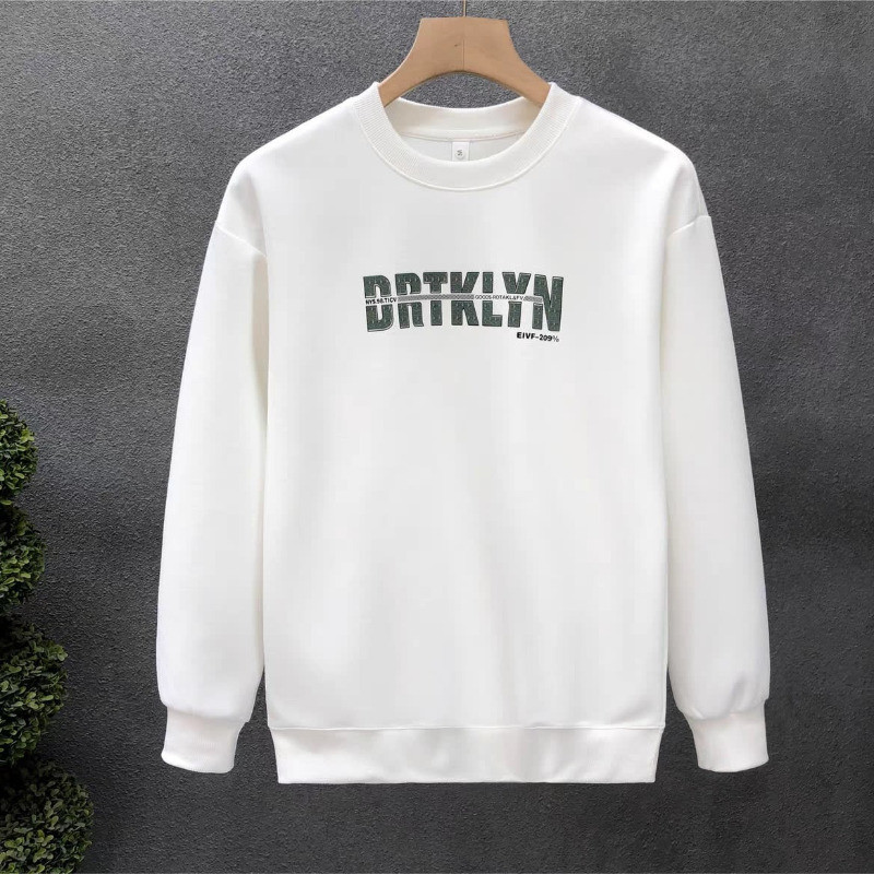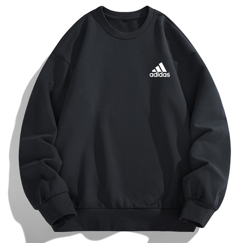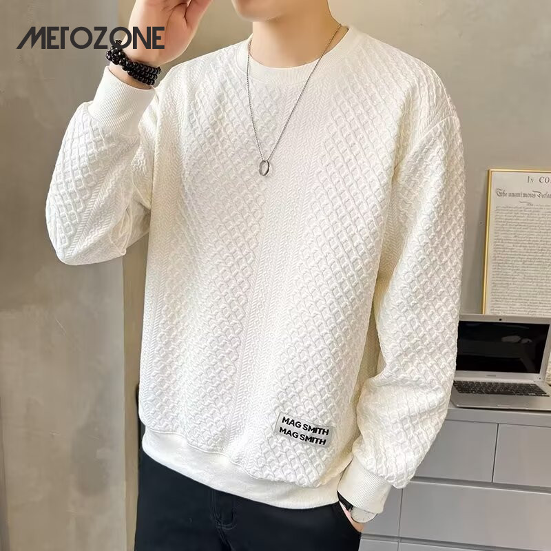 เสื้อยืดสไตล์ใหม่ผู้ชายแขนยาวหลวมสบาย ๆ คอกลมเสื้อกันหนาวสีดำ
