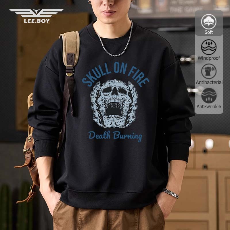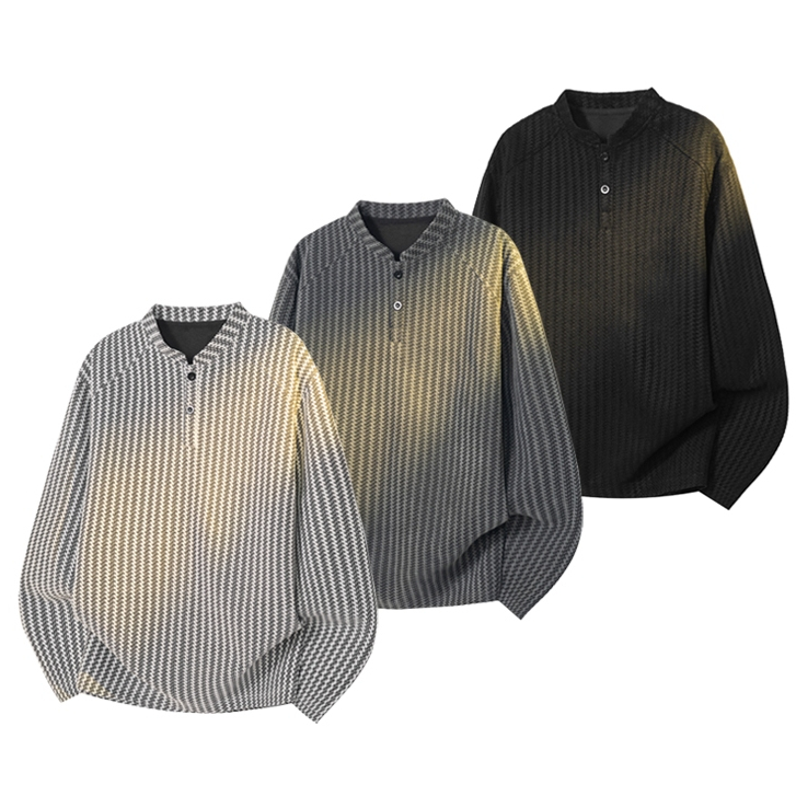 เสื้อเชิ้ตแขนยาวผู้ชายคอกลม เสื้อสวมหัว ผ้าสำลีเกรดพรีเมียม พิมพ์ลายแฟชั่น บุขนกันหนาว ยับยากรีดง่าย พร้อมส่งจากกทม