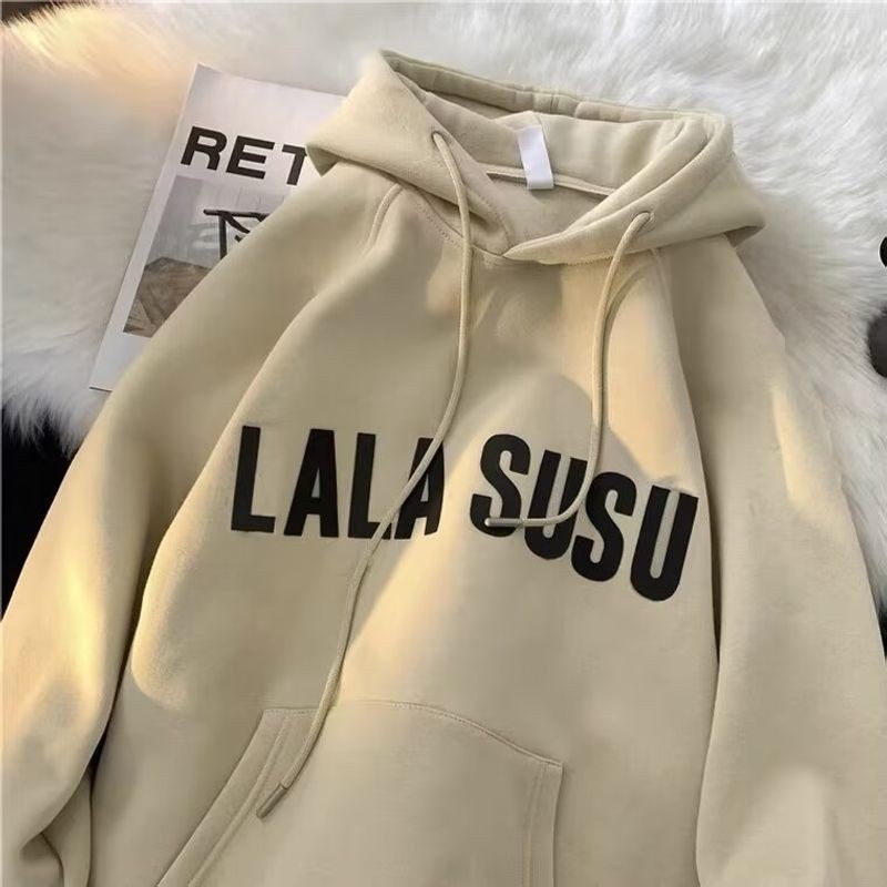 เสื้อฮู้ดทรงหลวมสไตล์อเมริกัน มีลายพิมพ์ตัวหนา เหมาะสำหรับวัยรุ่น