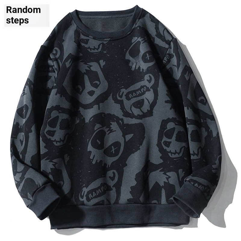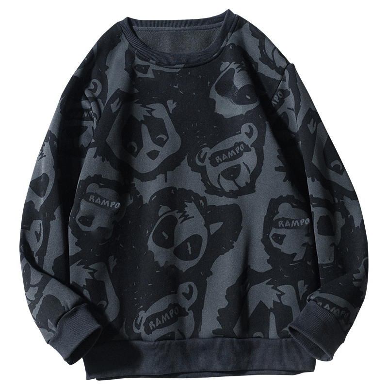 เสื้อฮูดี้โอเวอร์ไซซ์สำหรับผู้ชาย พร้อมลายพิมพ์ทั่วตัวและรอบคอมีความเหมาะสมในหน้าหนาว
