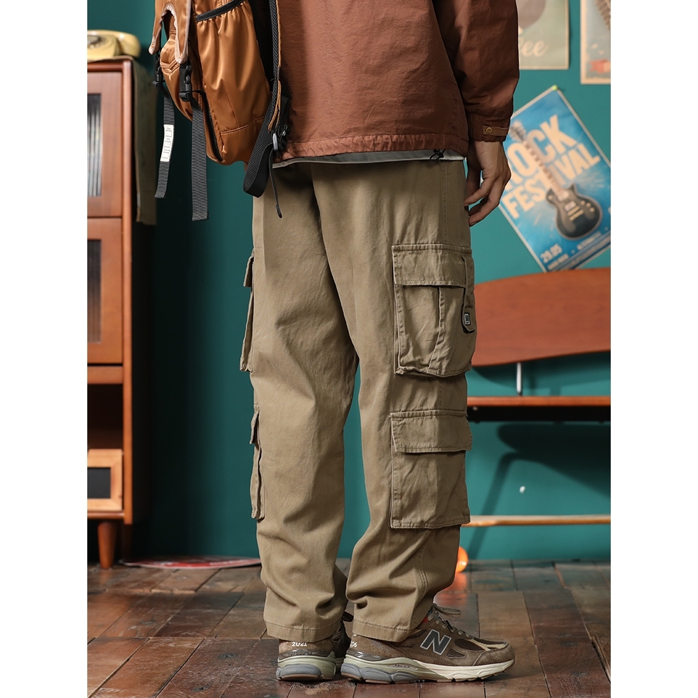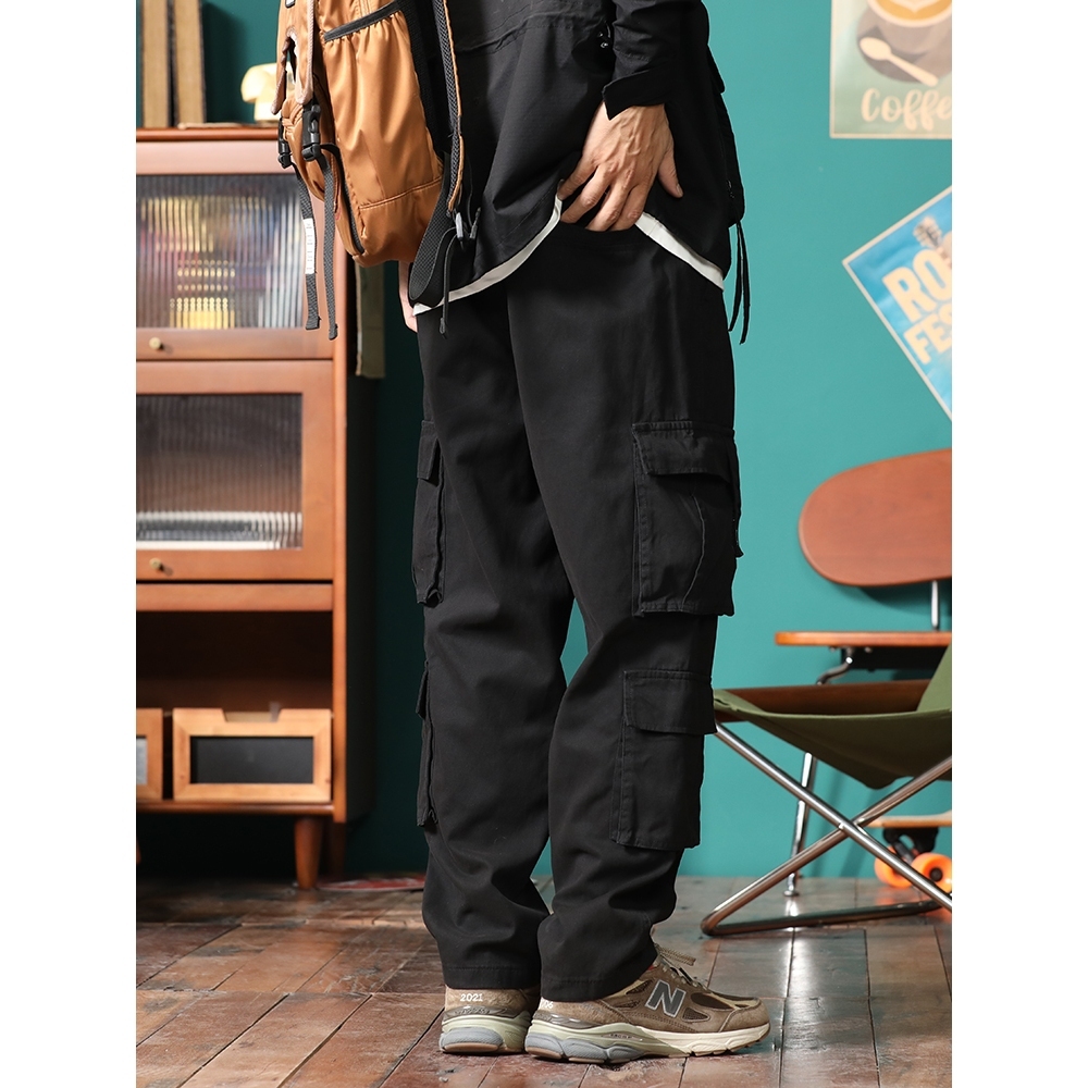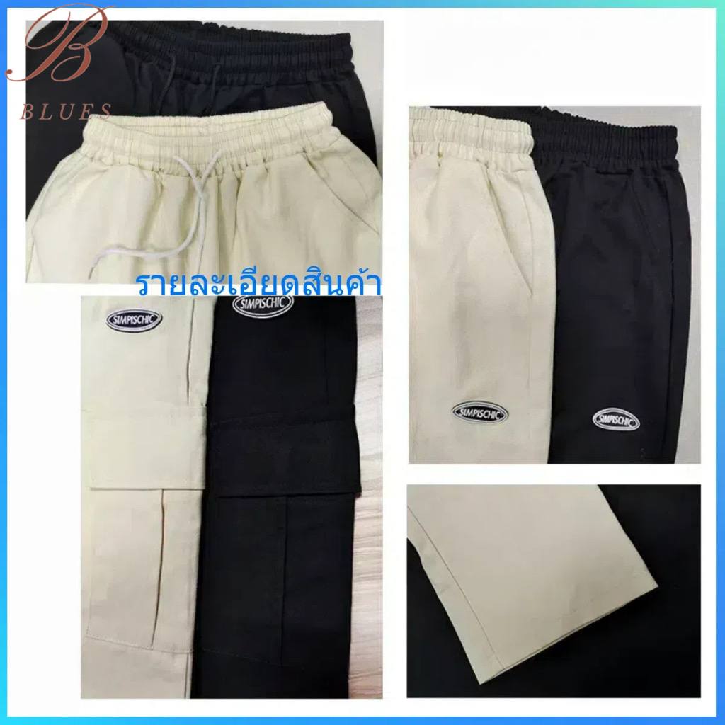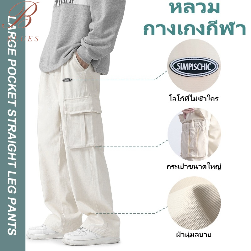 B BLUES กางเกงทำงานผู้ชายสไตล์ใหม่สุดเทรนด์ มีกระเป๋าหลายใบ แบบหลวมและขากระบอกตรง Men กางเกง คาโก้