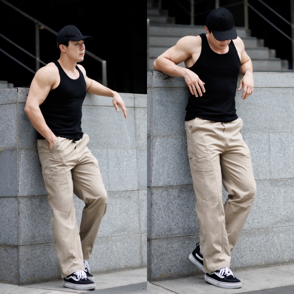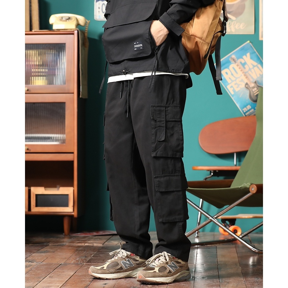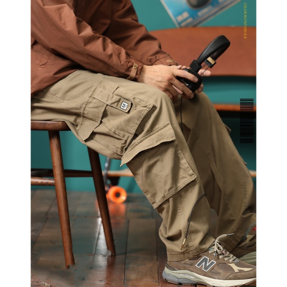 B BLUES กางเกงทำงานผู้ชายสไตล์ใหม่สุดเทรนด์ มีกระเป๋าหลายใบ แบบหลวมและขากระบอกตรง Men กางเกง คาโก้