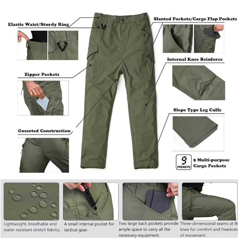 ?ในสต็อก?Ix9กางเกงคาร์โก้กางเกงยุทธวิธีมีซับในผ้ายืดหยุ่นและกระเป๋าหลายช่อง รุ่นบาง