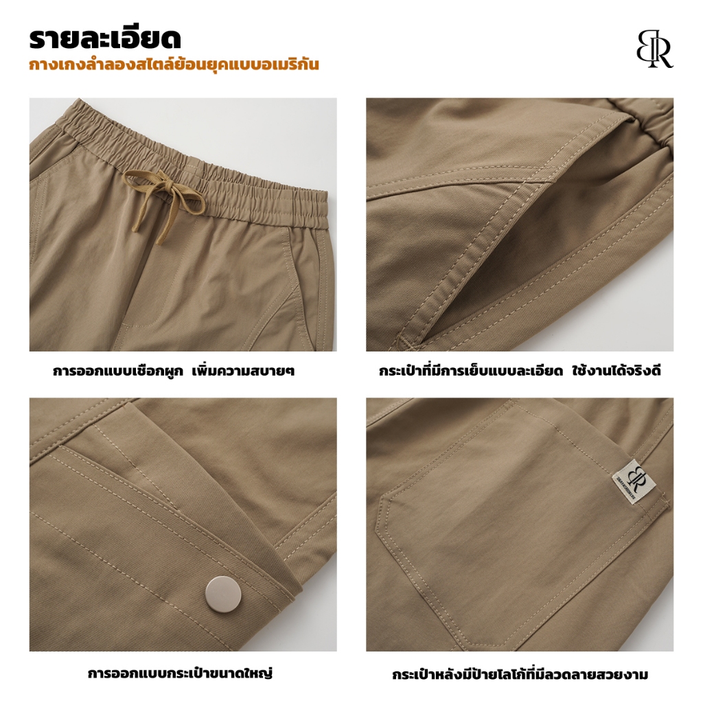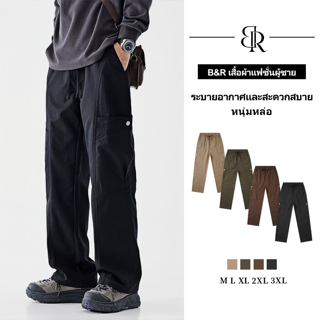 B&R กางเกงลำลองผู้ชาย เชือกรูดเอวยางยืด กระเป๋าขนาดใหญ่ สไตล์สตรีท กีฬากลางแจ้ง