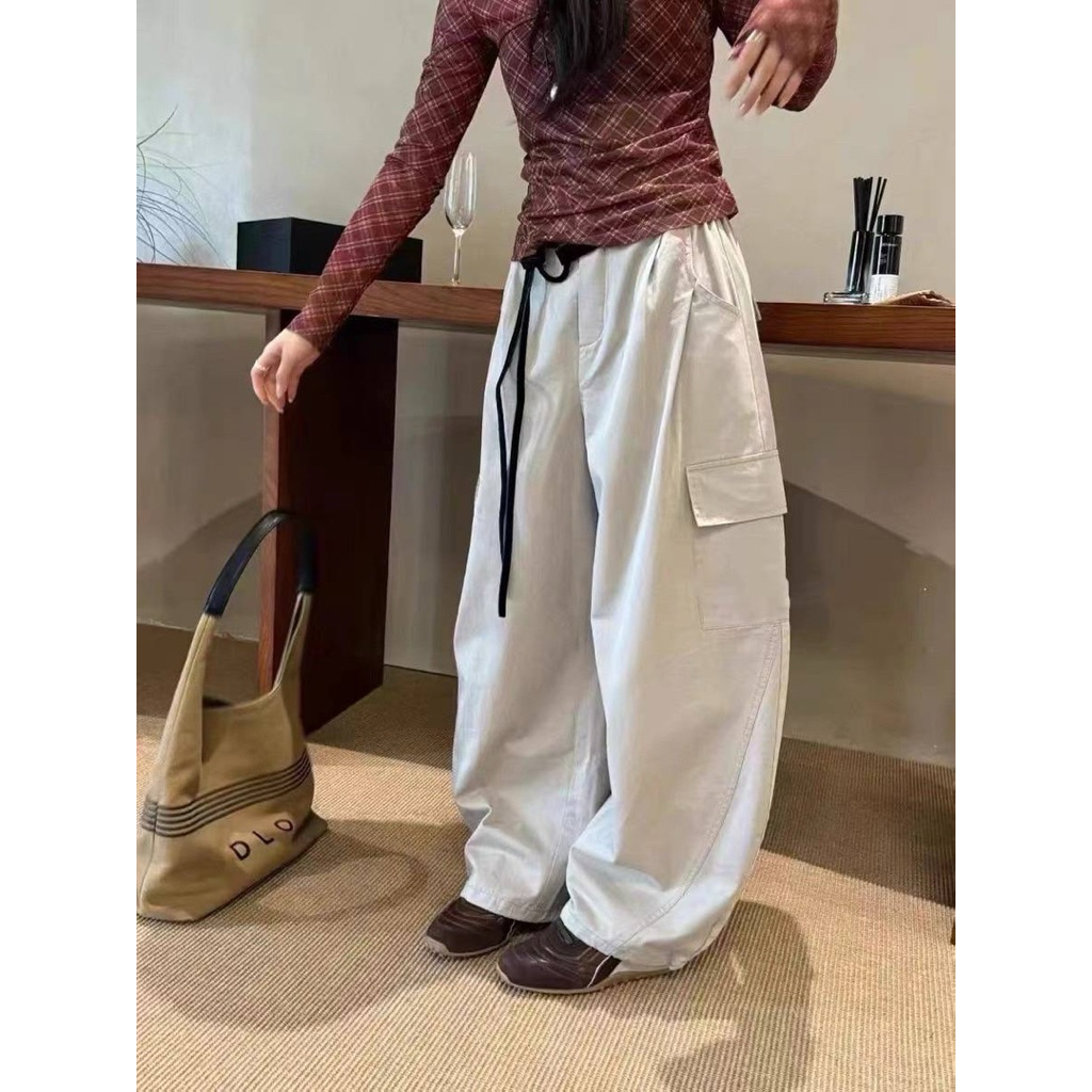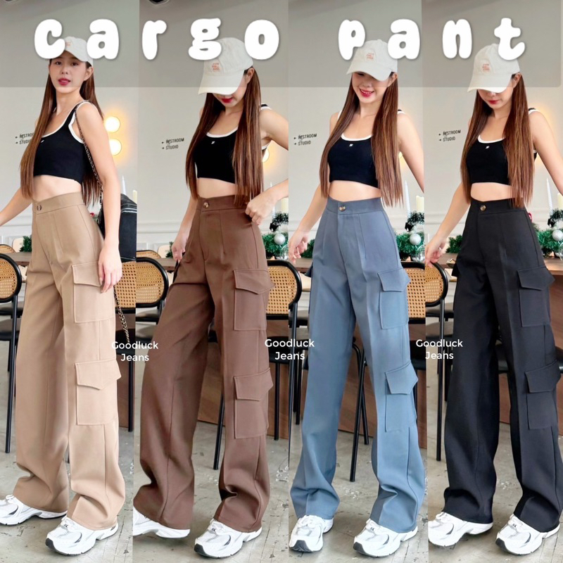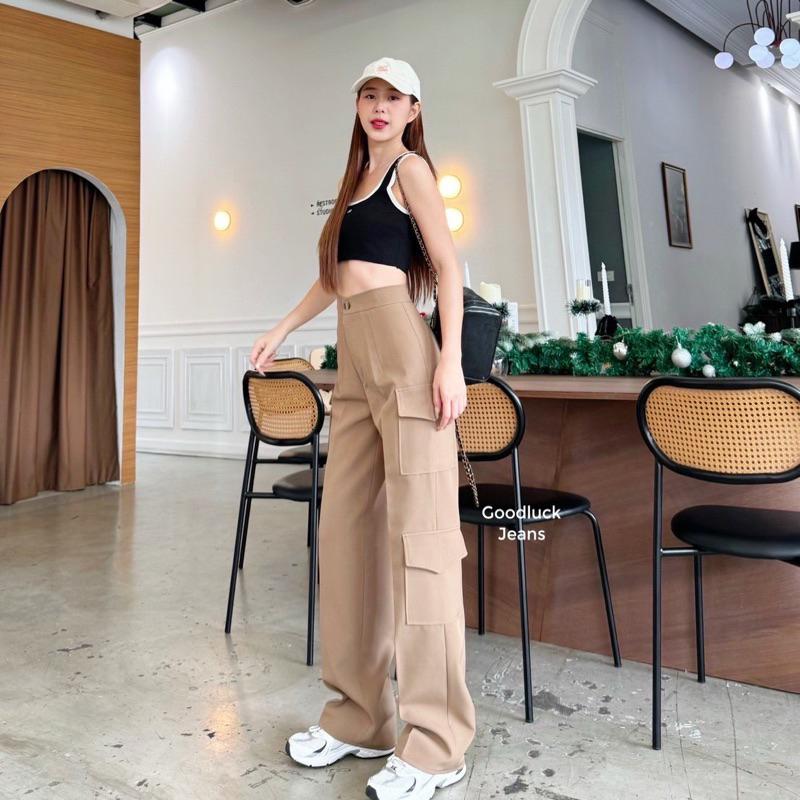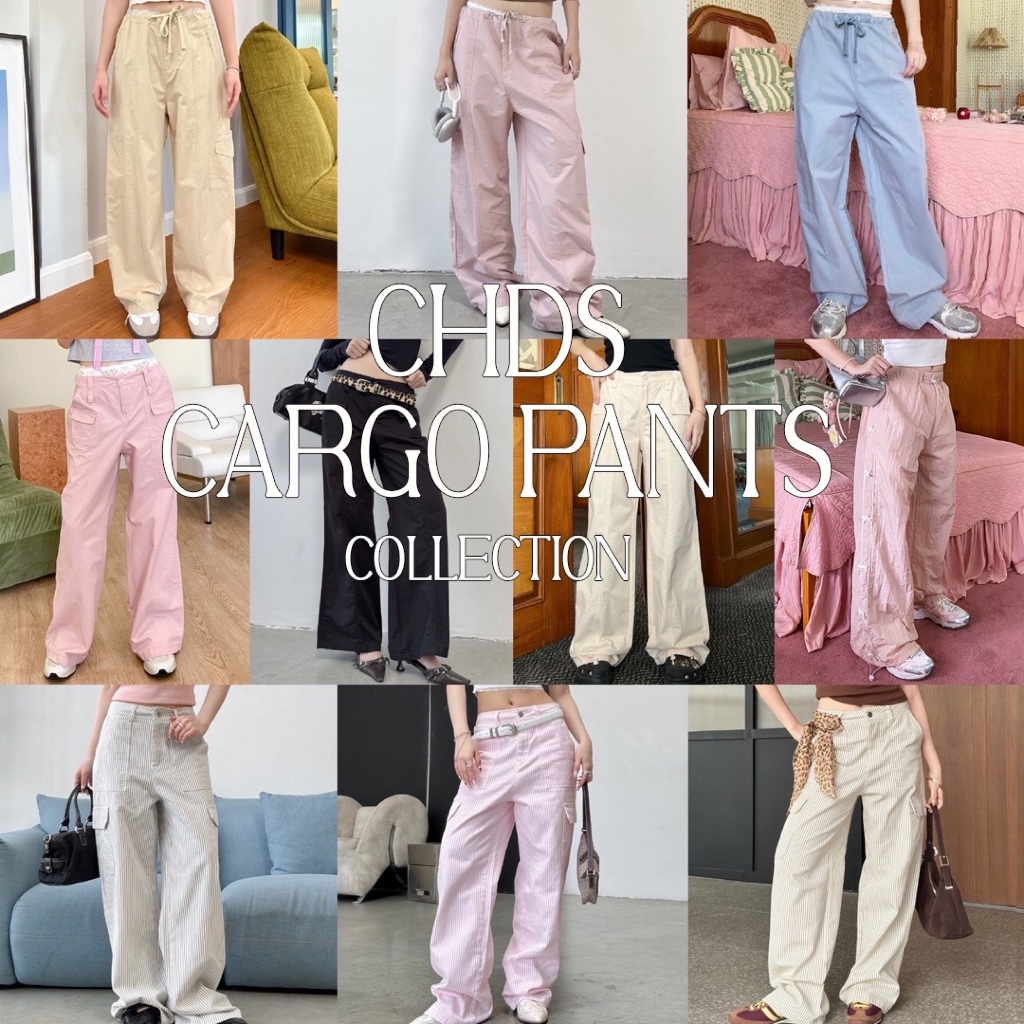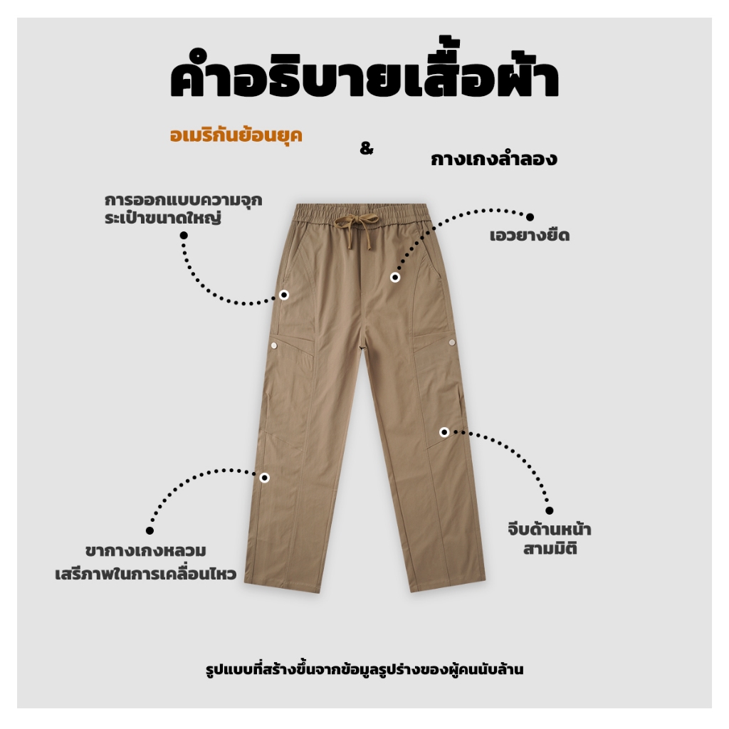 CAGO?กางเกงคาร์โก้ ทรงสตรีท กระเป๋าใช้งานได้จริง เอวฟรีไซต์ยางยืด ผ้าร่มไมโครใส่ง่ายไม่บาง คาร์โก้สไตล์เกาหลี?