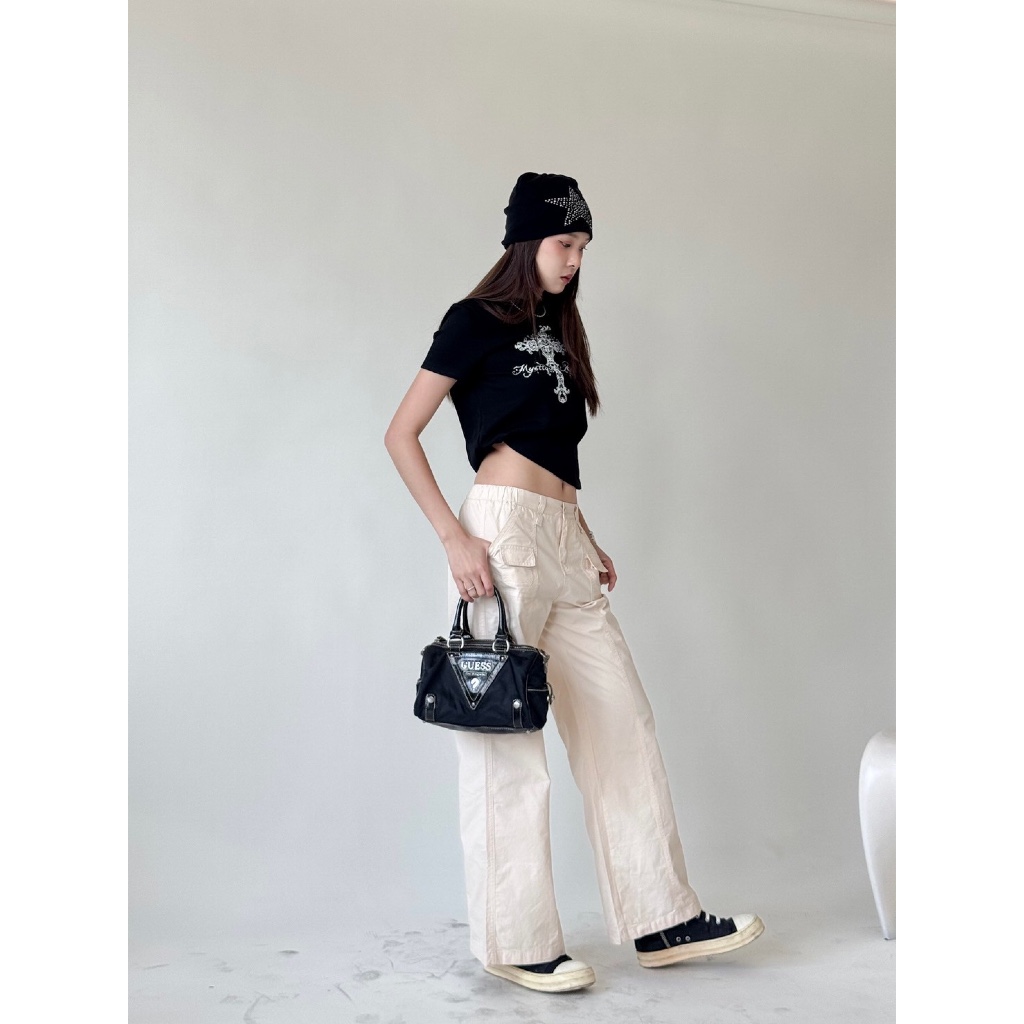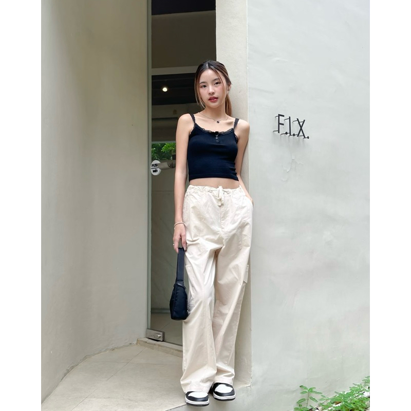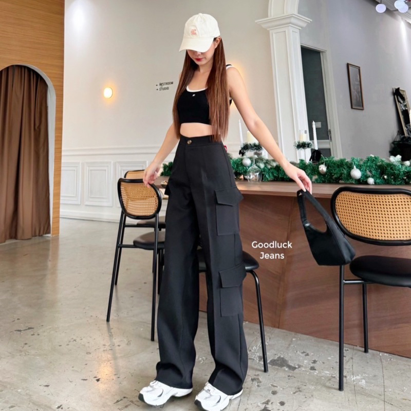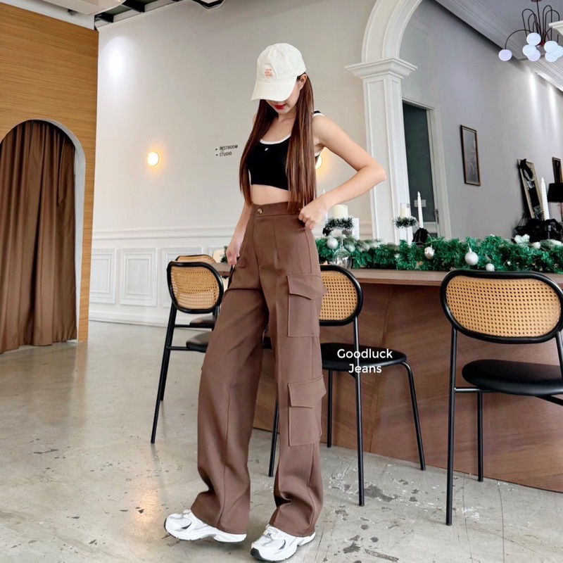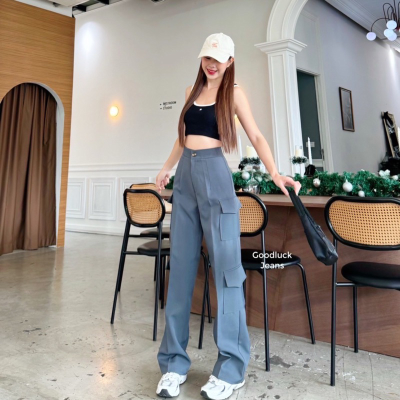 CAGO?กางเกงคาร์โก้ ทรงสตรีท กระเป๋าใช้งานได้จริง เอวฟรีไซต์ยางยืด ผ้าร่มไมโครใส่ง่ายไม่บาง คาร์โก้สไตล์เกาหลี?