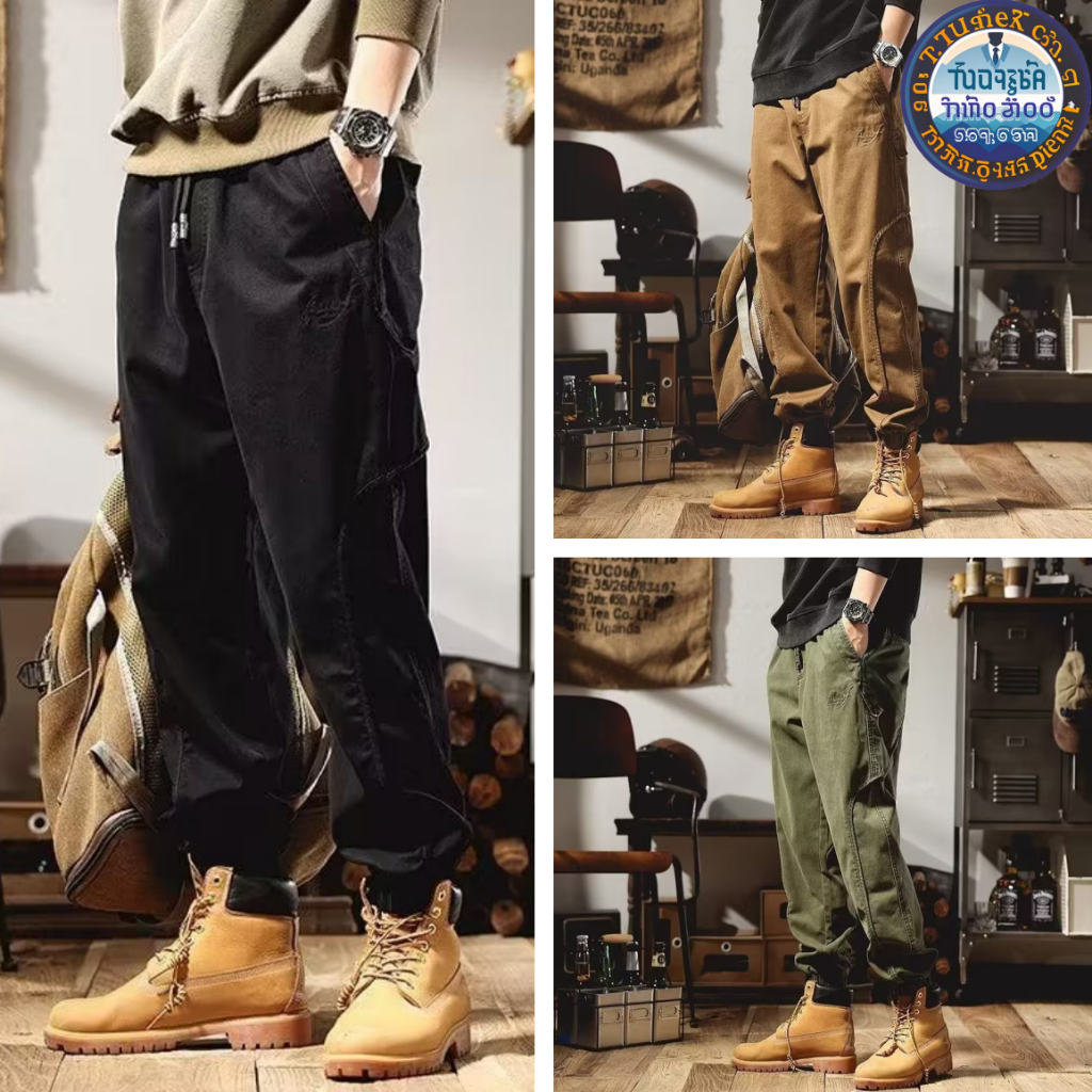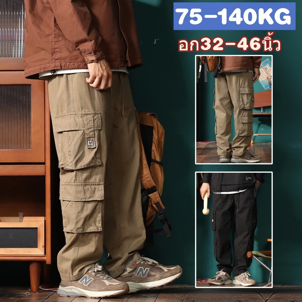 ?พร้อมส่ง?กางเกงคนอ้วน 75-140KG กางเกงคาร์โก้ผู้ชาย พลัสไซส์ ทรงหลวม ใส่สบาย ลำลอง มีหลายกระเป๋า สไตล์เกาหลี